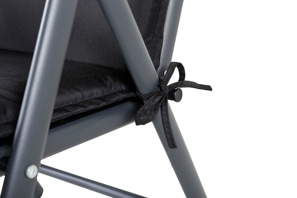 Klassisk og stilren sort positionsdyne, forsynet med pude og remme. Remmene hjælper med at holde dynen på plads. Dynen er stoppet med 50% Fiber og 50% Skum, som gør den blød og behagelig. Nyd ordentligt af dine herlige sommerdage!