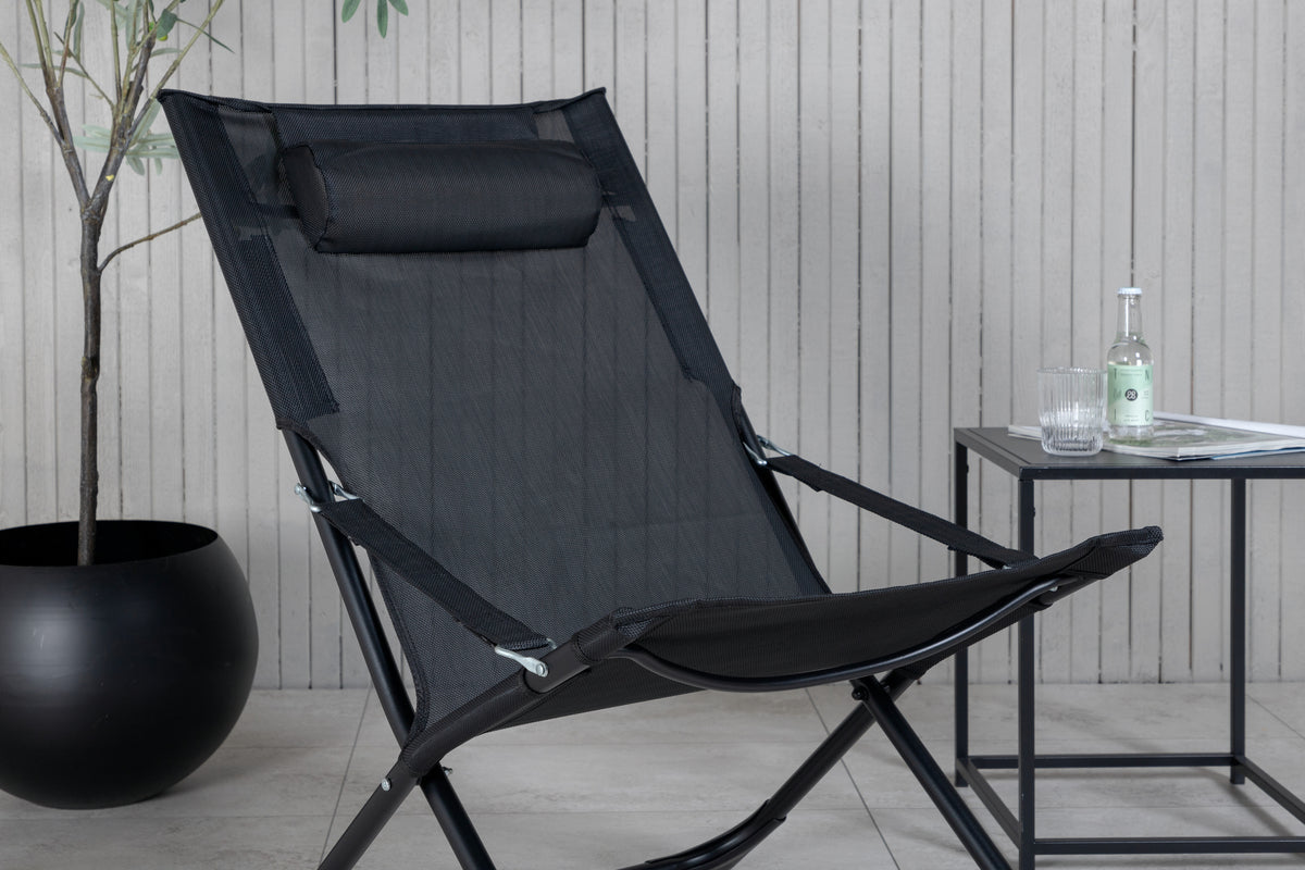Med solstolen Seville behøver du ikke at vælge mellem noget komfortabelt eller praktisk - den har begge egenskaber! Sædet har et sort stof med en pude, der kan vendes væk, og den har en ramme i sort aluminium. Da stolen let kan foldes sammen, er den perfekt at tage med ned til stranden eller ud i haven. Stolen passer også godt på de mindre terrasser, hvis man nemt vil stille møblerne væk efter brug.