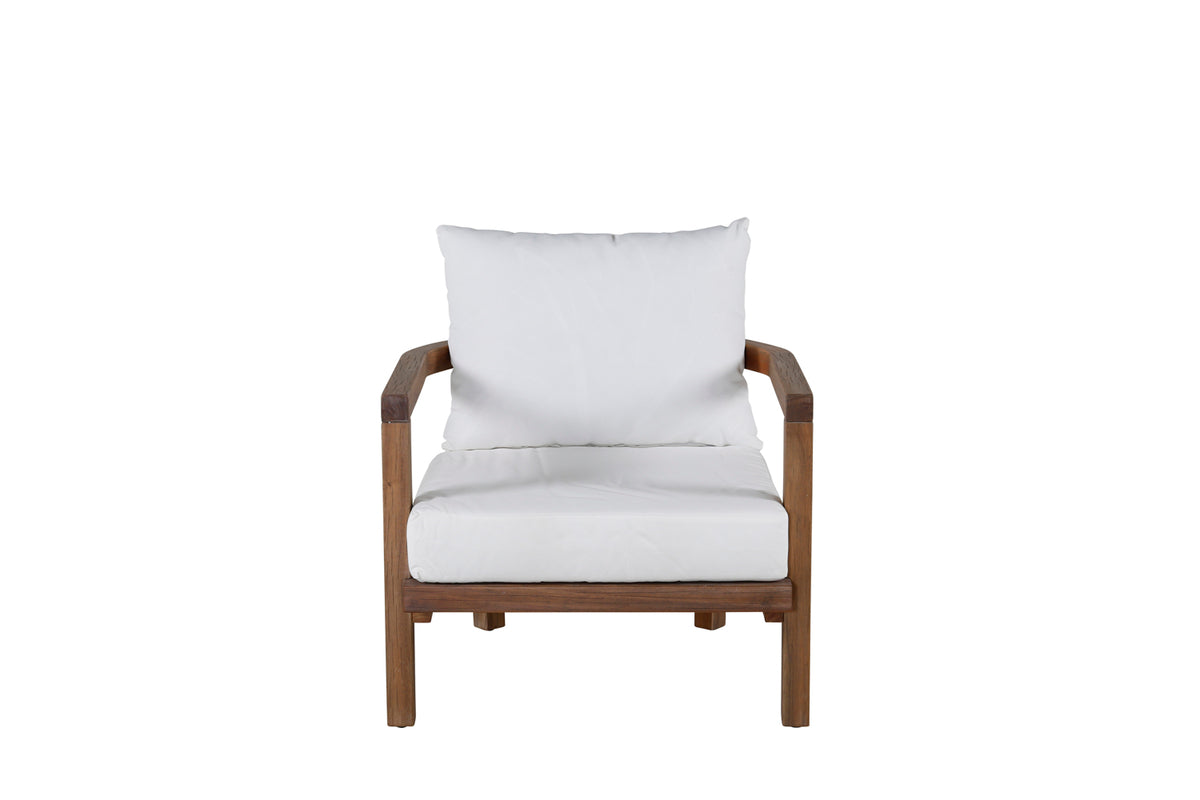 En drømmestol til sommerens udendørsliv! En moderne og stilren karmstol fremstillet i brun akacie med bløde hvide hynder til. Stolen har et industrielt og rustikt udtryk, hvilket gør, at den passer ind i de fleste miljøer. Vores loungestol Erica passer lige så godt ved poolkanten som under pavillonen i haven. En bekvem og robust stol med alt det rigtige, ganske enkelt!