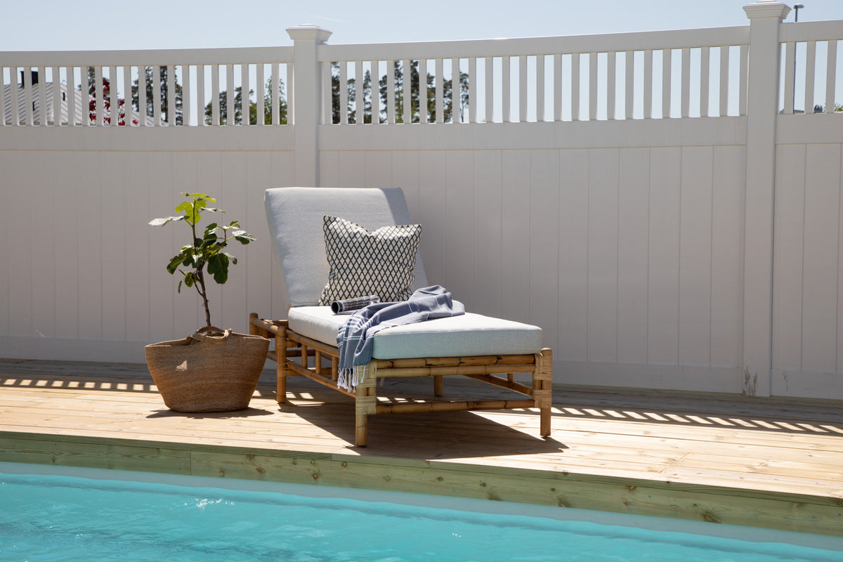 Indret terrassen med en moderne solseng i et luksuriøst look fra Cane-serien! Denne komfortable solstol skaber en indbydende og tropisk følelse med sit gennemtænkte helhedsdesign. Tilhørende grå hynder er af blødt polyesterstof. Stellet er fremstillet af naturfarvet bambus, og det naturlige materiale giver hvert enkelt møbel en unik karakter. En stilfuld og smart solseng, der simpelthen fanger blikket og øger komforten på en solrig sommerdag.