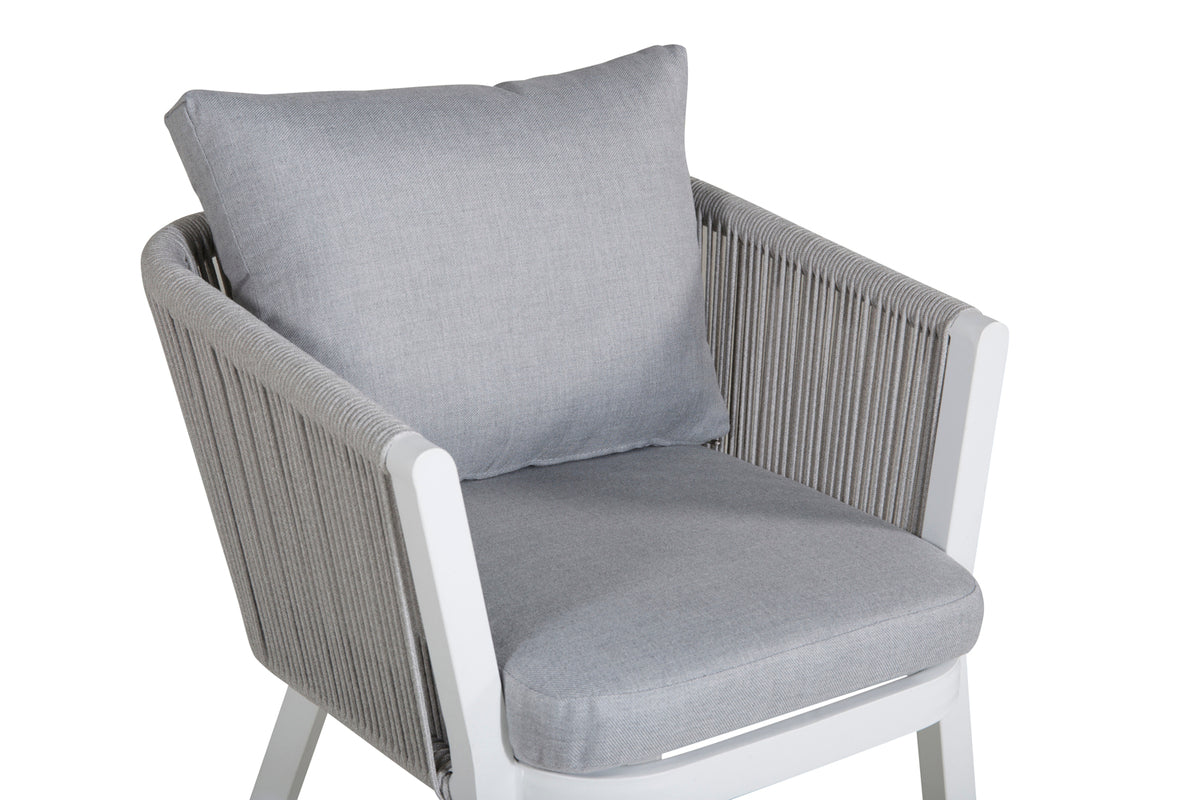 Vores reb er kvalitetsspundne polyesterreb, som er lette at rengøre. Møblerne er behandlet til at kunne klare 500-2000 timer. Vi anbefaler sæbe og vand til rengøring. Lad lufttørre. Til de områder, der er sværere at komme til, kan en lille børste bruges forsigtigt. Brug aldrig højtryksrenser eller stærke kemikalier til at rengøre rebet.
