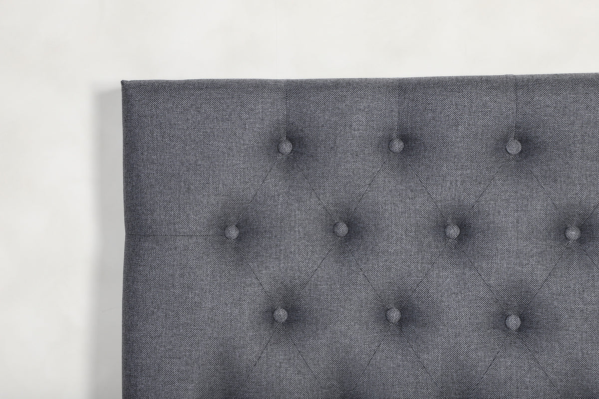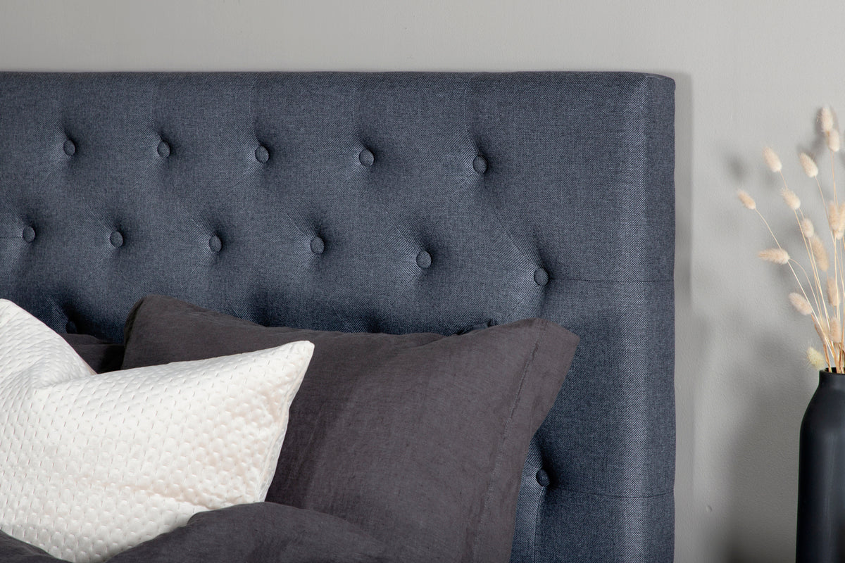 Furuvik, fritstående luksuriøs sengegavl i fuldpolstret design i et mørkegråt polyesterstof med dekorsømme og dybhæftede, klædte mørkegrå knapper. Med denne sengegavl er det nemt at skabe en luksuriøs følelse i dit soveværelse. Mål: Bredde: 120 cm, Højde: 125 cm, Dybde: 10 cm. Materiale: ramme bygget i træ og koldskum, beklædt med polyesterstof. Tips/råd: Stil gavlen mellem væggen og sengen, så behøves ingen forankring. Nyd en god søvn - i dit pragtfulde soveværelse!