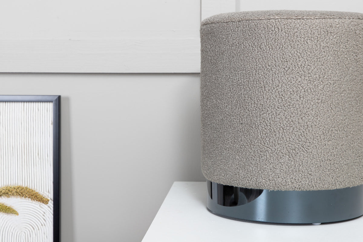Fodskamlen Benji skaber hurtigt en stilbevidst atmosfære og vil bestemt være et smart supplement til dit hjem! Med sit bløde cylindriske design og trendy greige farve i fluffy teddy-stof, skaber den et varmt og fashion-forward indtryk. Brug den som fodskammel til at hvile fødderne på, som ekstra sæde når gæsterne er mange, eller placer den som en stil-ikon ved siden af andre møbler - kun fantasien sætter grænser! Den sorte metalbund bliver et dekorativt detalje. Fremstillet af materialer som skum, bomuldsfiber, teddy-stof, buet træ og stål. Dimensioner af fodskamlen: Højde: 42,5 cm, diameter: 35 cm.