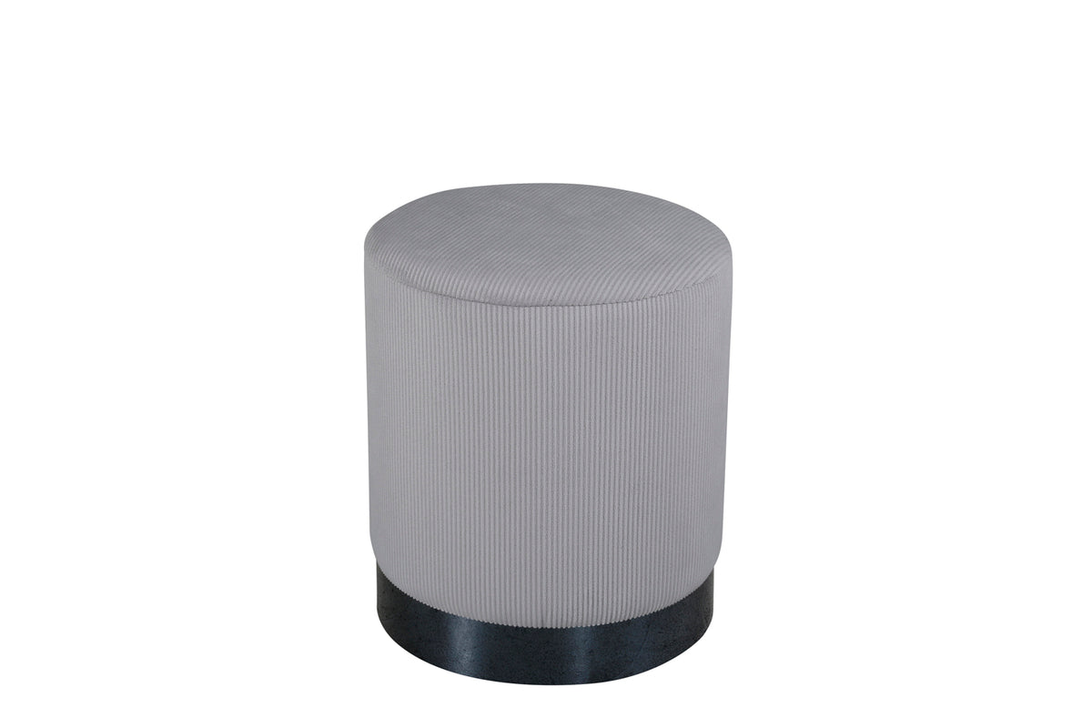 Bring 50'er-nostalgien ind i dit hjem med en grå puf i lækkert fløjlsstof! Benji er både praktisk med flere anvendelsesområder og en beskeden størrelse, og den forbedrer indretningsfølelsen i dit hjem - en smart kombination, ganske enkelt! Brug den som fodskammel til at hvile fødderne på, som en ekstra siddeplads når gæsterne bliver mange, eller placer den som et stilikon ved siden af andre møbler - kun fantasien sætter grænser! Metalbasen i sort farve er en dekorativ detalje. Fremstillet i materialerne skum, bomuldsfibre, stof, bøjet træ og stål. Puffens mål: Højde: 42,5 cm, diameter: 35 cm.