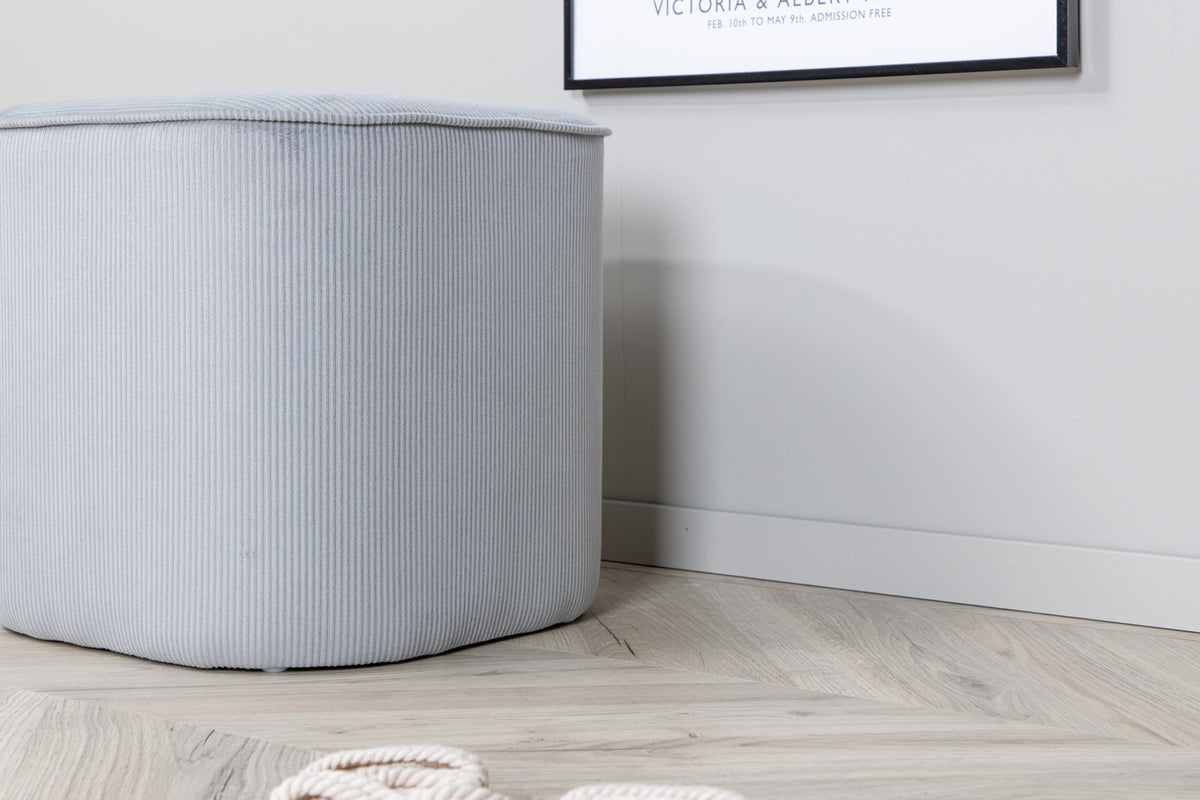 Bring 50'er-nostalgien ind i dit hjem med en grå puf i lækkert fløjlsstof! Piff er både praktisk med flere anvendelsesmuligheder og en beskeden størrelse, og den forbedrer indretningsfølelsen i dit hjem - en smart kombination, ganske enkelt! Brug den som fodskammel til at hvile fødderne på, som en ekstra siddeplads, når der er mange gæster, eller placer den som et stilikon ved siden af andre møbler - kun fantasien sætter grænser! Fremstillet i materialerne skum, bomuldsfibre, stof og bøjet træ. Puffens mål: Højde: 41 cm, diameter: 44 cm. Indret dit hjem nemt og stilbevidst!