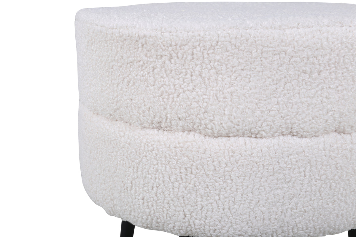 En enkel og diskret fodskammel, der trods sin nette størrelse imponerer med sit trendy design og moderne teddy-stof. Pot er en siddepuf i en lækker benhvid farve, fremstillet af materialerne skum, bomuldsfibre, stof og bøjet træ. Benene er let udadgående i sort stål og bidrager til en luftig følelse. Puffens mål: Højde: 40 cm, diameter: 40 cm. Lige så praktisk som flot er denne siddepuf let at placere og har flere anvendelsesmuligheder - læg fødderne op, tilbyd en ekstra siddeplads eller placer den solitært som en fed indretningsdetalje!