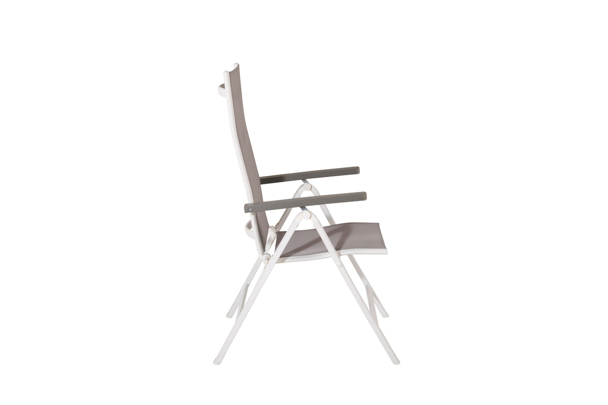 Albany – lige så komfortabel som praktisk og stilren! En grå 5-positioners stol med lækre armlæn for ekstra komfort. Ryglænet er justerbart for optimal bekvemmelighed. Stolen passer lige så godt i haven som ude på terrassen. Nyd sommeren på allerbedste vis!