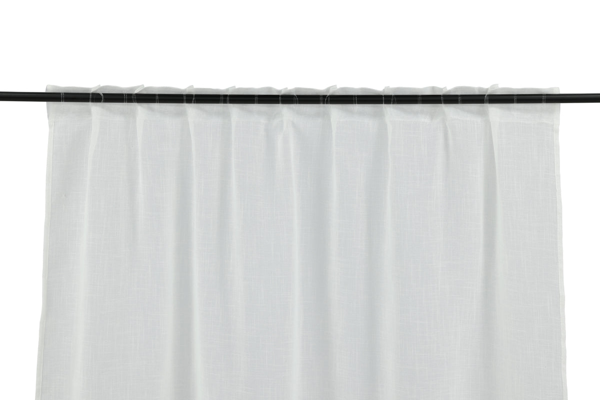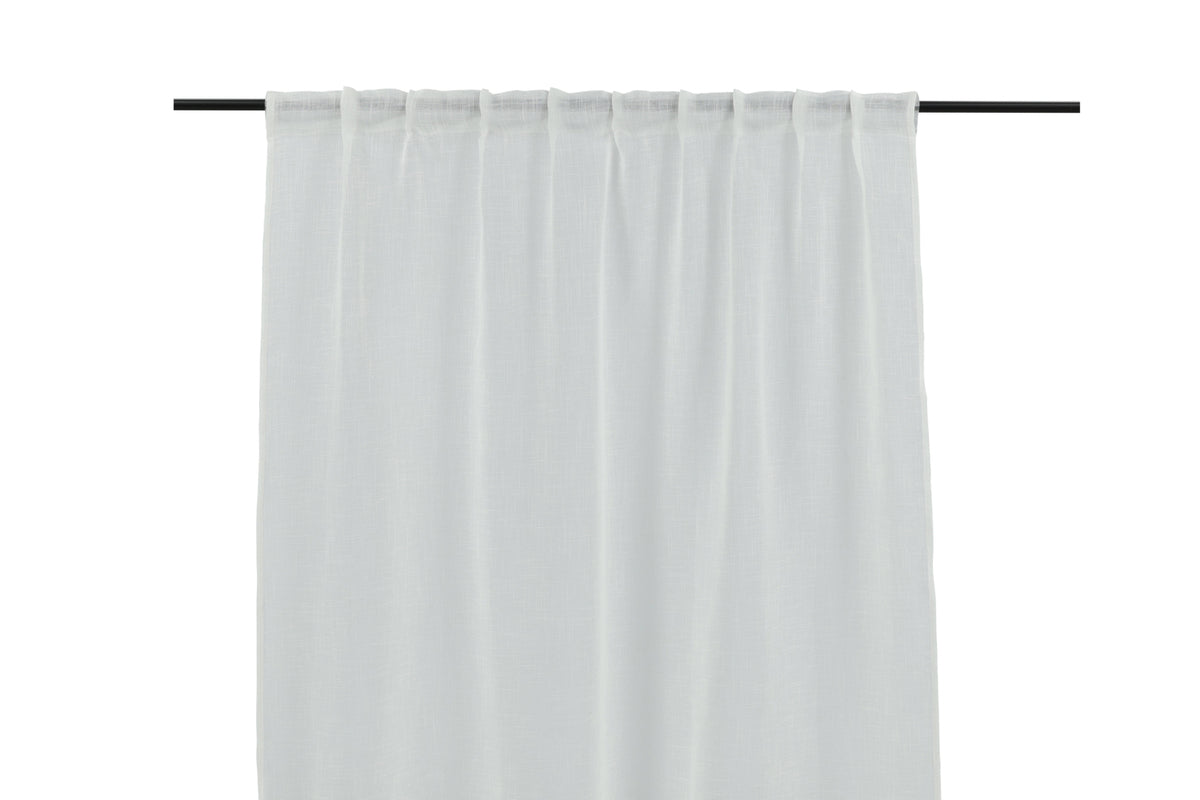 Kaya gardinen har et multibånd, hvilket er en enkel løsning til at fastgøre gardinen direkte på en gardinstang i stropperne eller bruge nålekroge og ringe. Den har en hvid farve, som giver en indre ro i dit hjem. Den er lavet af 100% polyester og er 140x240 cm. Indeholder 2 stk. gardinlængder.