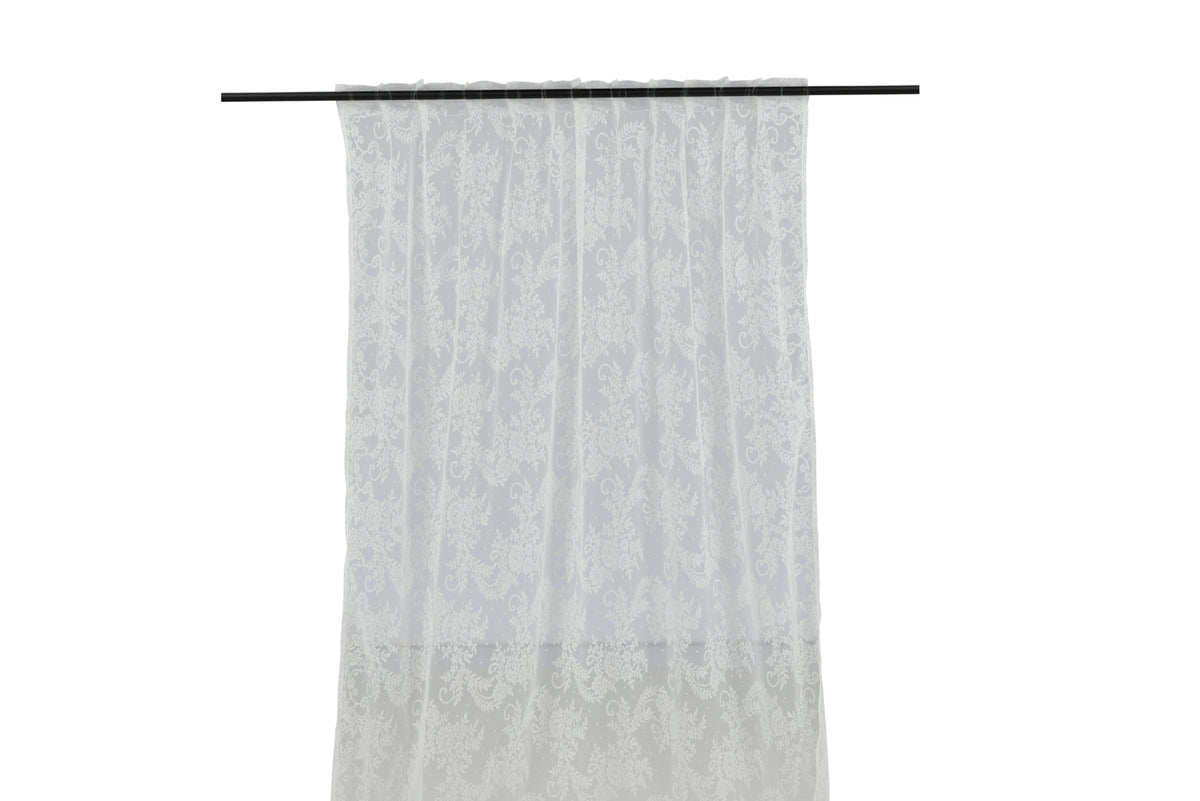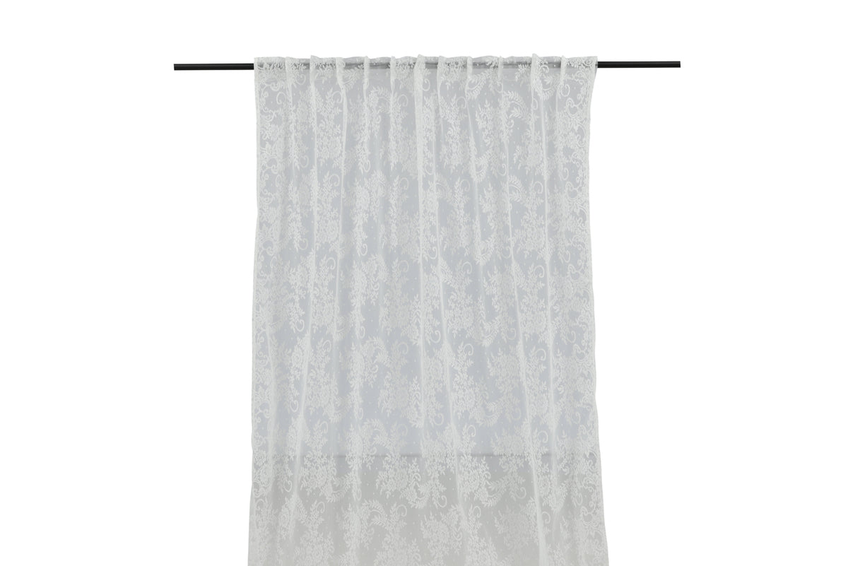 Skab en dejlig romantisk stemning derhjemme med gardinlængden Daisy i et let polyestermateriale med blonde! Brug den alene eller kombiner den med andre gardinlængder for at skabe et ekstra luksuriøst og dejligt indtryk! Gardinlængden har påsyet multifunktionsbånd, hvilket giver dig mulighed for at hænge gardinet op på den måde, der passer bedst til netop dit hjem. Vælg mellem fingerkroge eller skjult strop og skab en dejlig indbydende følelse, der varer over tid! Vi anbefaler, at du ved pletter bruger pletfjerner og lufter tekstilet ofte for at bevare farve og form længe. Vi anbefaler, at du ved maskinvask vasker ved 30 grader. Mål: 140x240. Indeholder 2 styk gardinlængder.