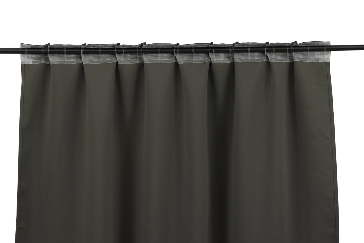 Med Evelyn mørklægningsgardin i en dejlig mørkegrå elegant farve, fremstillet i polyester, skaber du nemt en luksuriøs følelse i hjemmet. Den jordnære farve smelter på en harmonisk måde sammen med øvrig indretning, og det solide stof lukker på en pæn måde stærkt sollys ude og holder hjemmet svalt og behageligt. Vi anbefaler ved pletter at bruge pletfjerner og lufte tekstilen ofte for at bevare farve og form længere. Ved maskinvask anbefaler vi at vaske gardinen ved 30 grader. Mål: 135x240. Indeholder 2 styk gardinlængder.