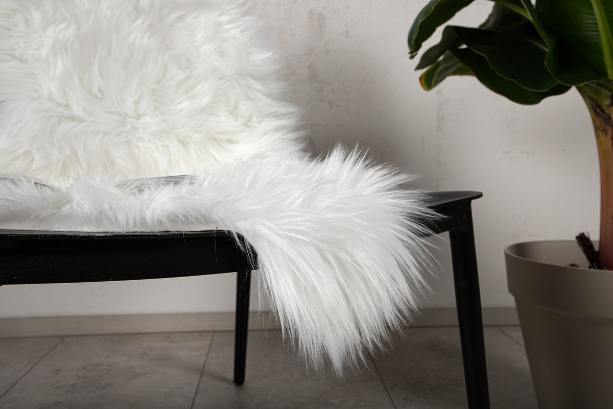 Indret dit hjem hyggeligt og varmt med en kunstpels i fåreskinds imitation. I en trendsikker hvid farve og en fluffy pels med lange hår har denne kunstpels mange anvendelsesmuligheder - placer den ved siden af sengen, i sofaen, i barnevognen eller på terrassen for et varmere udtryk. Fremstillet i slidstærkt polyester og akryl samt ruskindsimitation for et mere autentisk look. Mål: 60x90 cm.