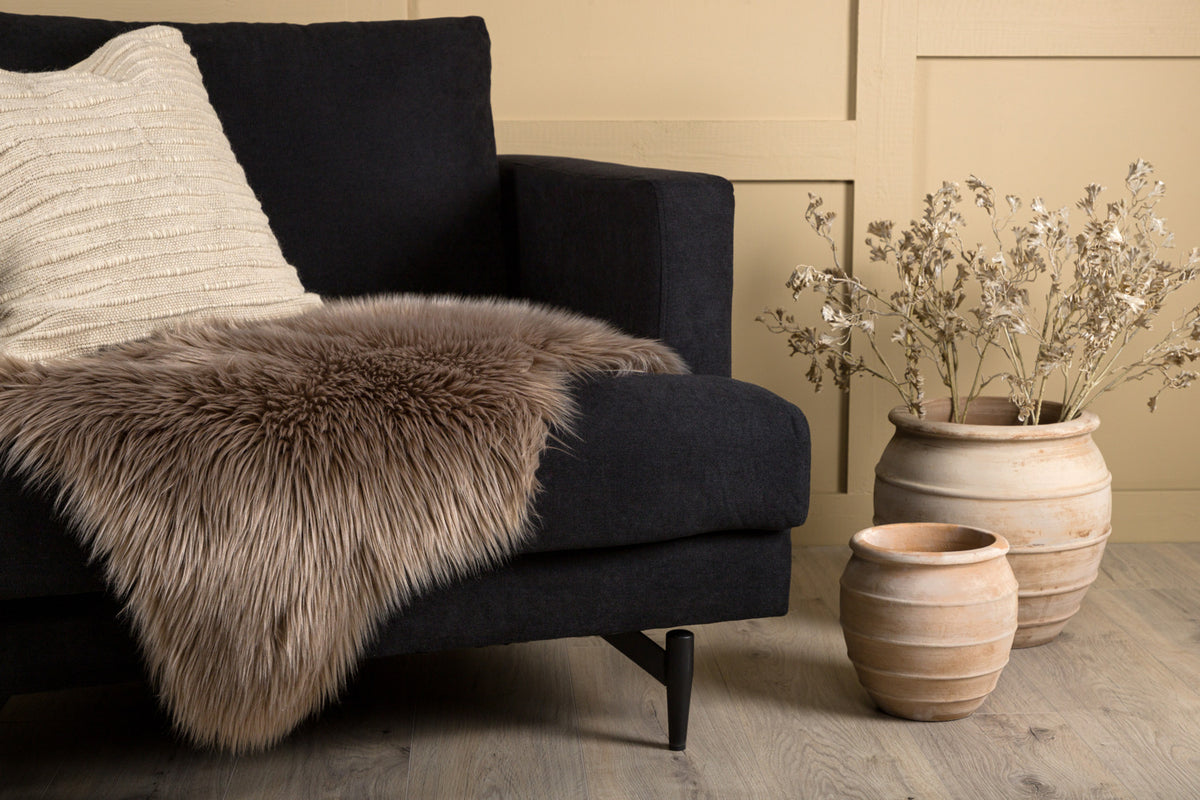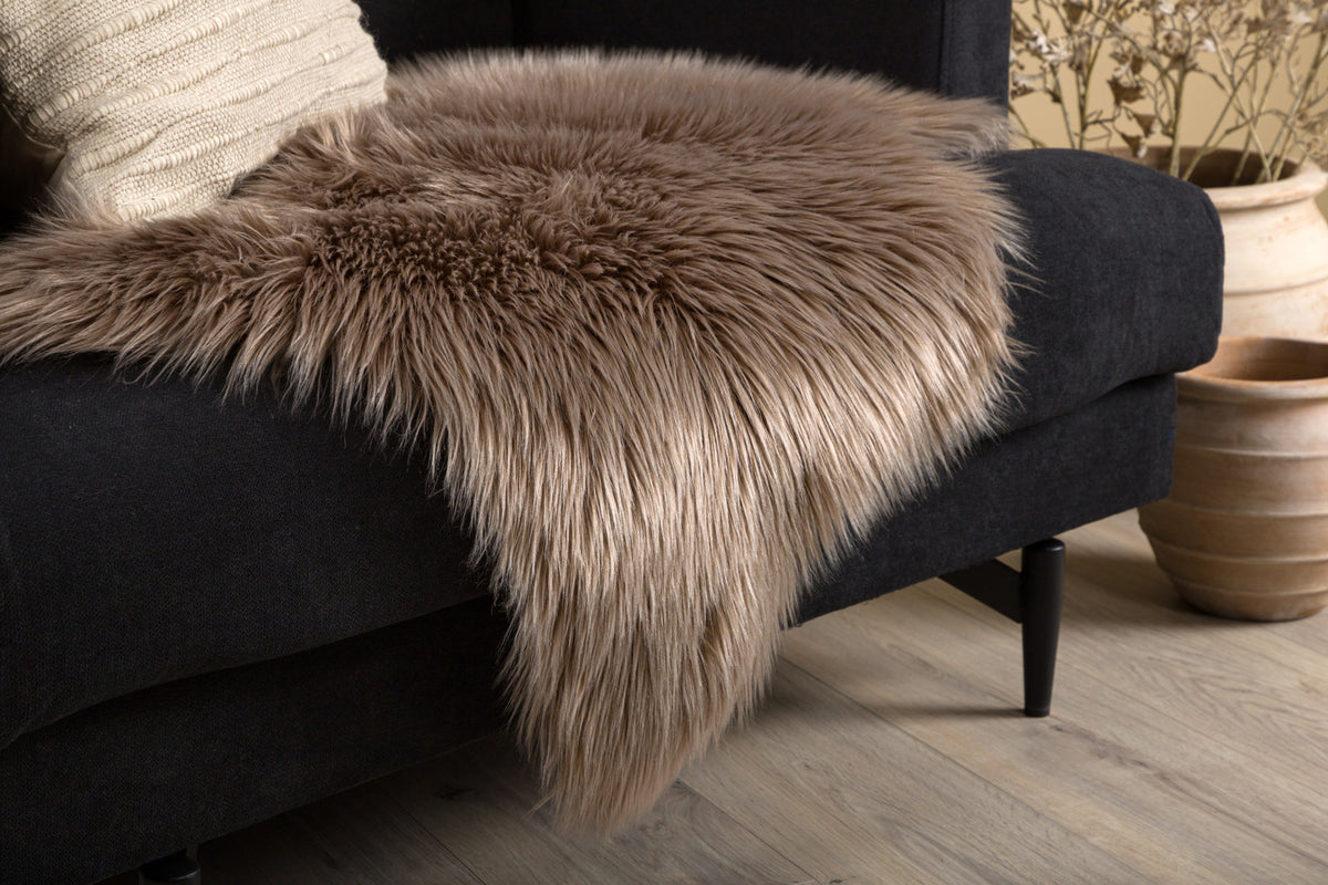 Skab en hyggelig og varm indretning i dit hjem med en kunstpels i fåreskinds imitation. I jordnær brun farve og fluffy pels med langt hår har denne kunstpels mange anvendelsesområder - placer den ved siden af sengen, i sofaen, barnevognen eller på terrassen for et varmere indtryk. Fremstillet i slidstærkt polyester og akryl samt mockaimitation for et mere autentisk look. Mål: 60x90 cm.