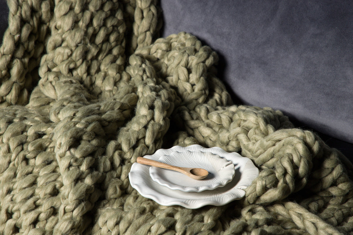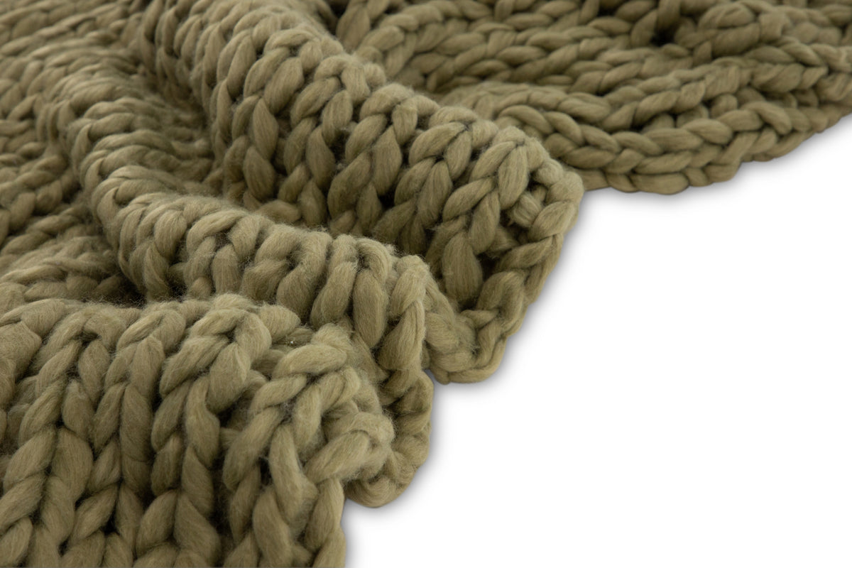 Hygge på hygge med plaiden Kate! Tænk at krybe op i sofaen med en kop te, den bedste serie på tv og et blødt, varmt tæppe over sig. Kate er en strikket plaid med tykt polyestergarn i en jordnær grøn farve, der holder dig varm, samtidig med at det er en rigtig flot indretningsdetalje i hjemmet. Med sine tykke masker og bløde følelse bliver plaiden Kate hurtigt hele familiens favorit. Smid den på sofaen eller i en lænestol for en rigtig indbydende følelse, det er kun fantasien, der sætter grænser!