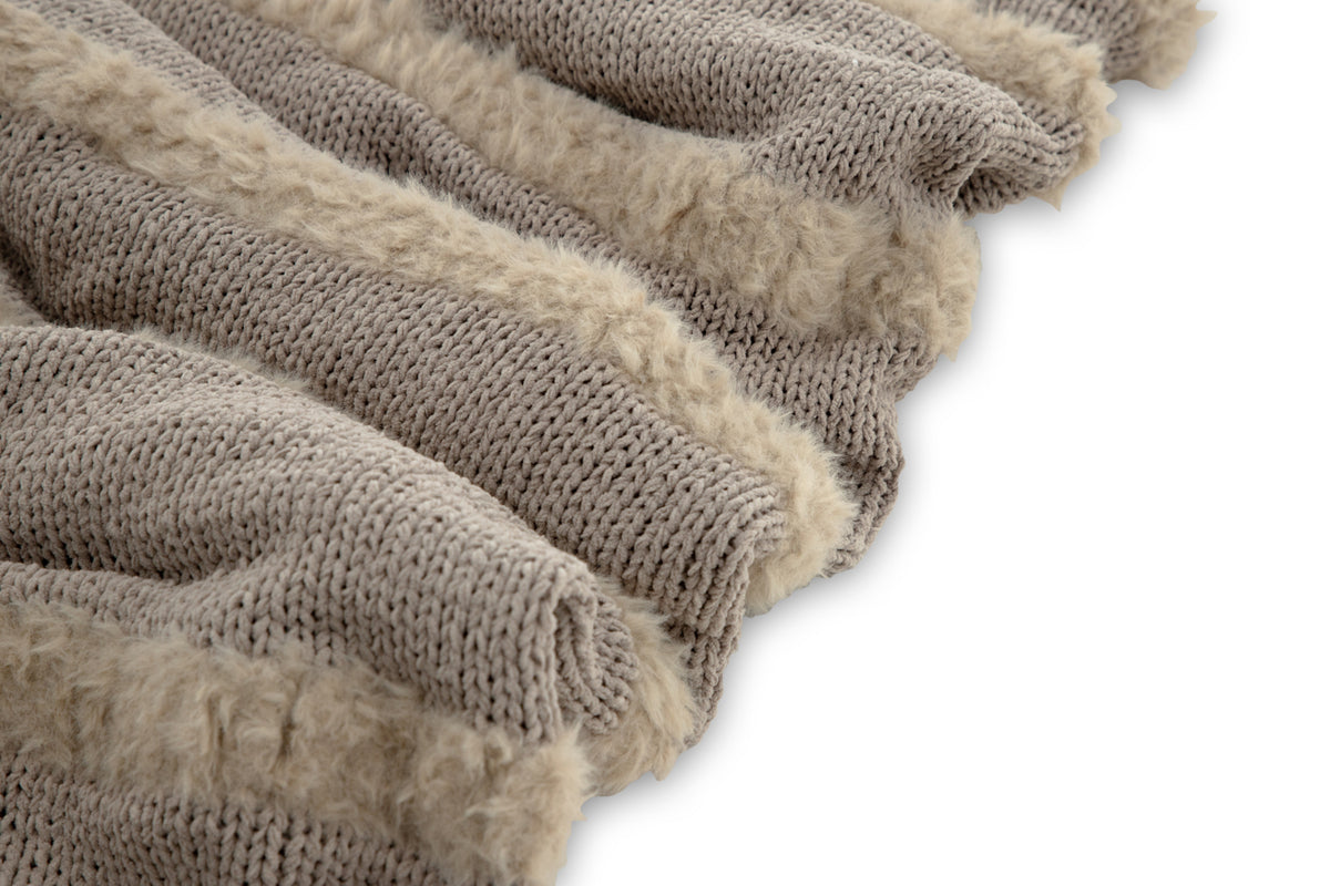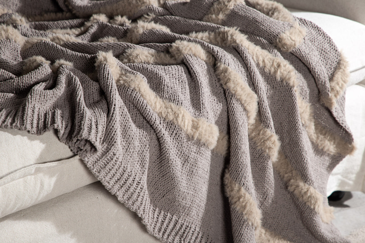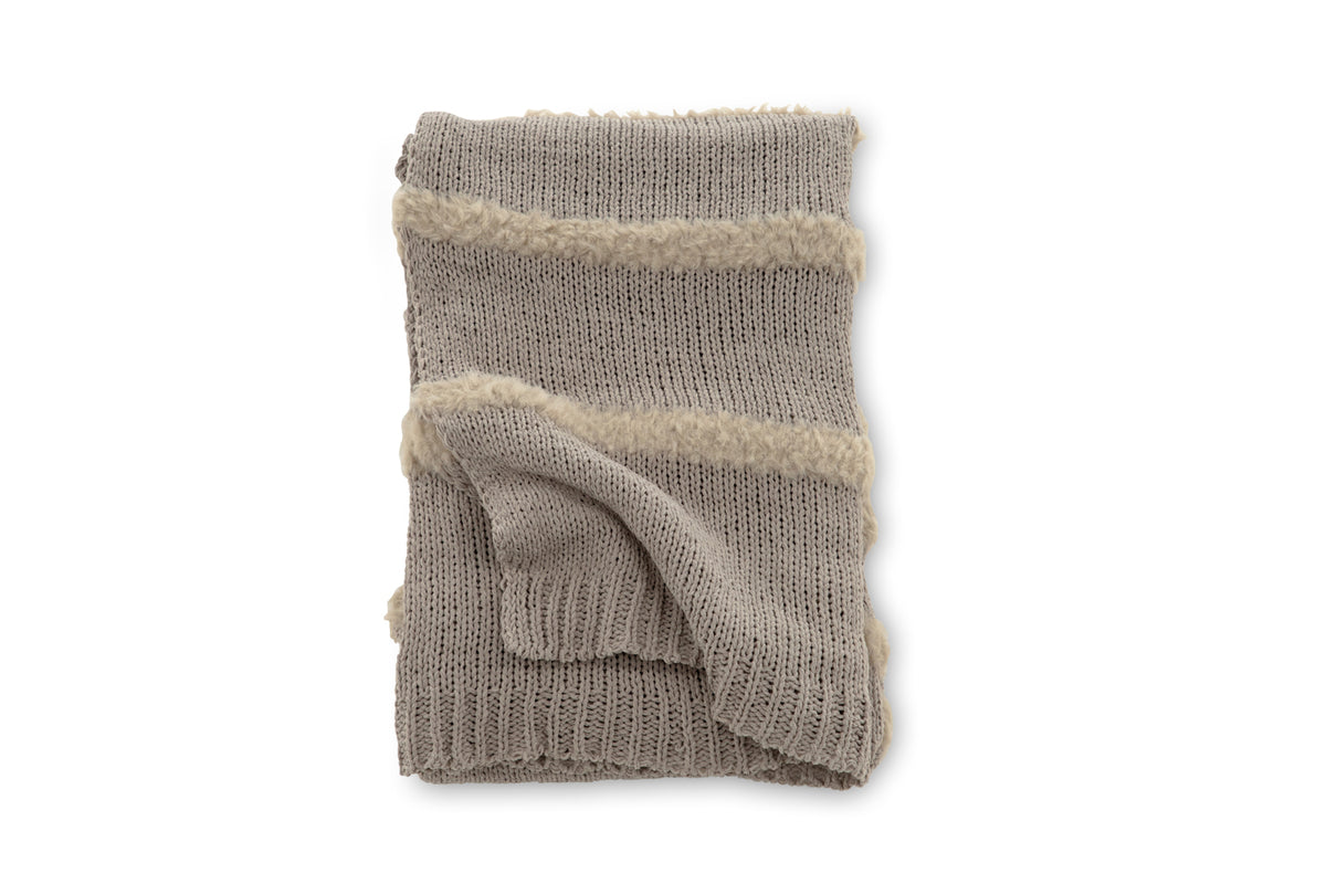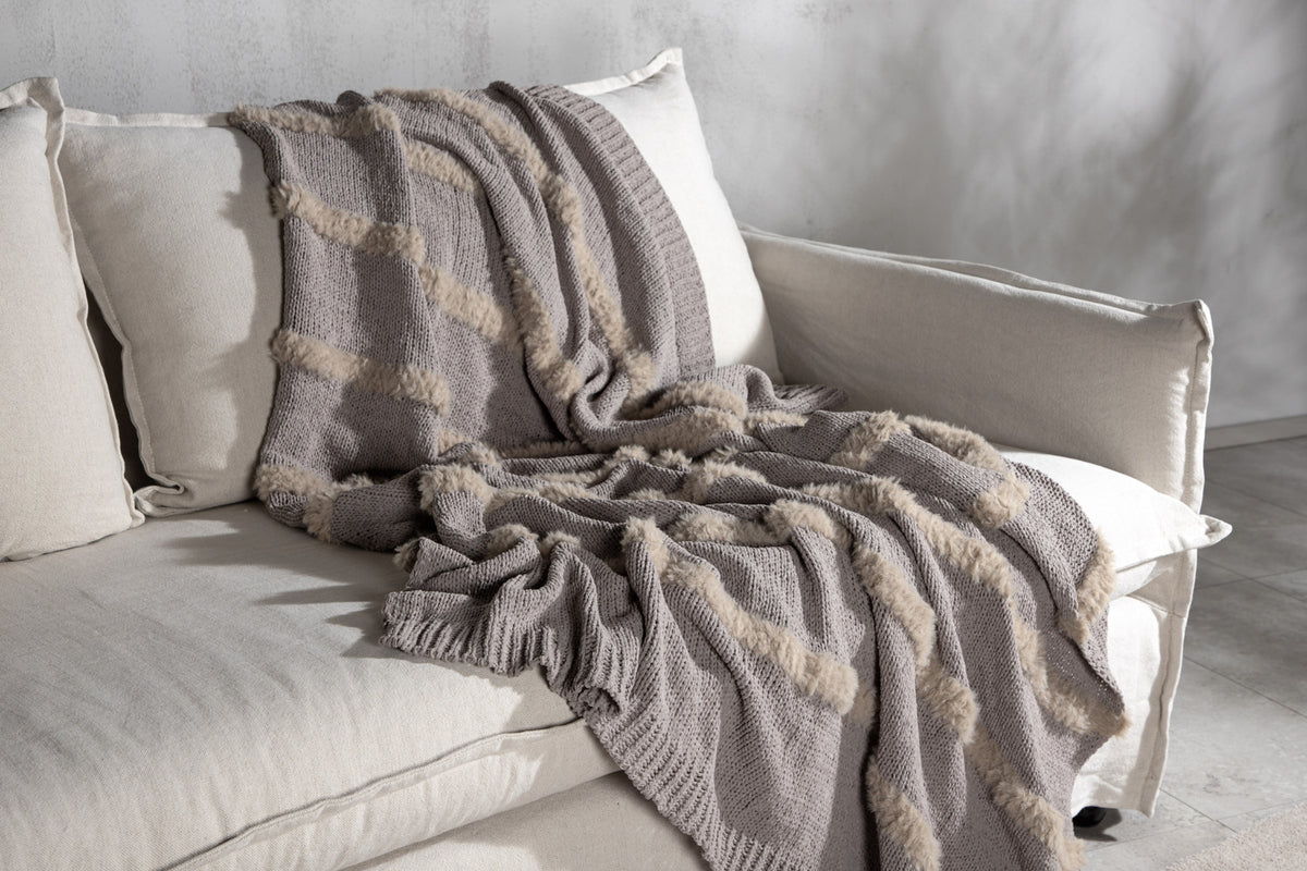 Katleen er plaiden, der garanteret øger hyggen i dit hjem! Plaiden har et linjeret mønster af tuftet fuskepels og er fremstillet af polyester og chenille. Den behagelige grå farve smelter ind i indretningen, og tæppets bløde kvaliteter holder dig varm under hele filmaftenen. Mål 130x170 cm.