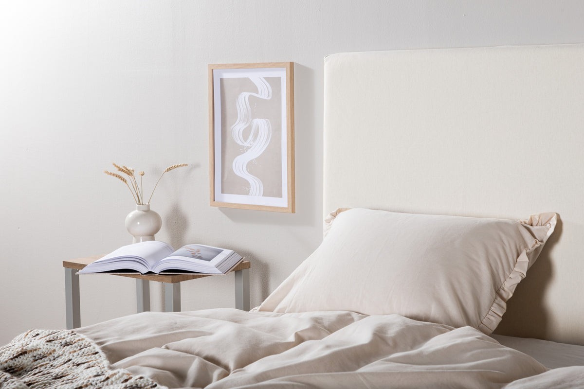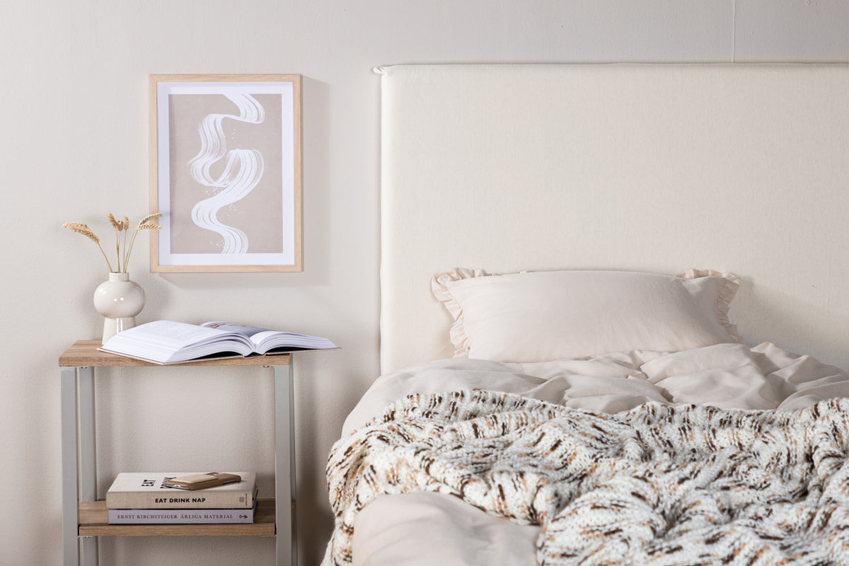 Sengegavlsovertrækket Saga er den perfekte løsning til dig, der er træt af din sengegavl, eller til dig, der gerne vil ændre derhjemme ofte! På en hurtig og enkel måde skaber du med overtrækket en helt ny følelse i soveværelset uden at skulle købe en helt ny gavl. Den hvide, friske farve passer ind i alle husholdninger og kombineres på en flot måde sammen med andre tekstiler og indretning, samtidig med at det efterlader en luksuriøs og stilren følelse i soveværelset. Fastgør hurtigt og enkelt sengegavlsovertrækket på bagsiden af sengegavlen med de påsyede velcrobånd. Vi anbefaler at vaske ved 40 grader med lignende farver. Mål: 180 cm