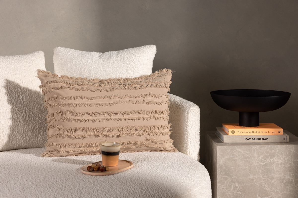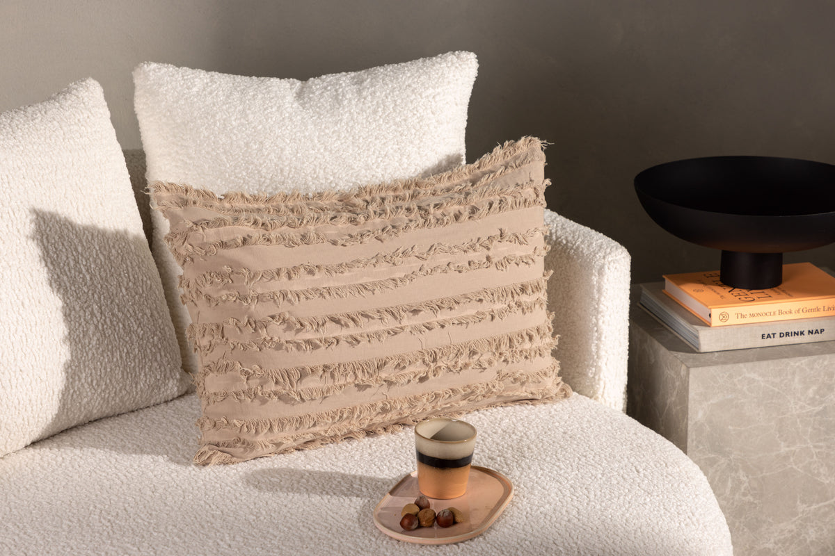 Et pudebetræk, der skiller sig ud og skaber et moderne blikfang! Dette pudebetræk tilhører serien Edith og er i slidstærkt bomuldsstof, der holder over tid. Betrækket har dekorative frynser, der skaber et flot lineært mønster. Her i en varm beige nuance, der nemt passer til den øvrige stil i hjemmet. Kombiner med andre farver og størrelser for at skabe et varieret og modebevidst blikfang til din indretning!