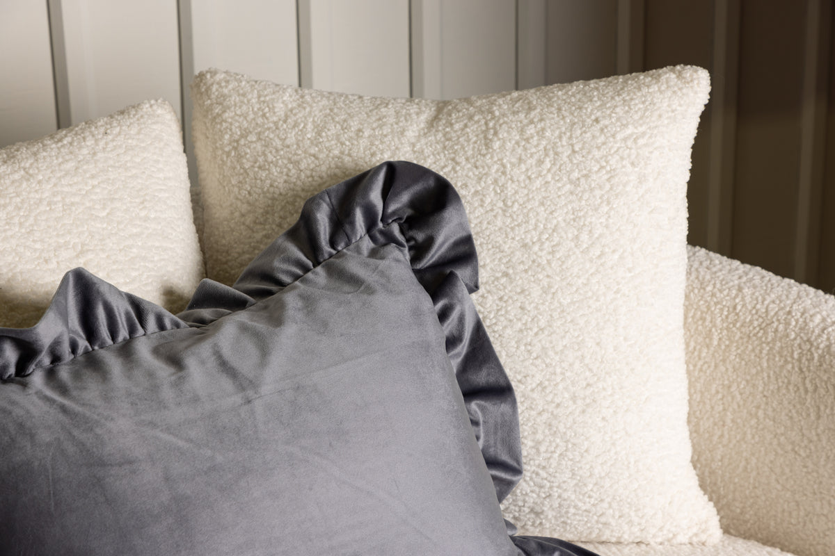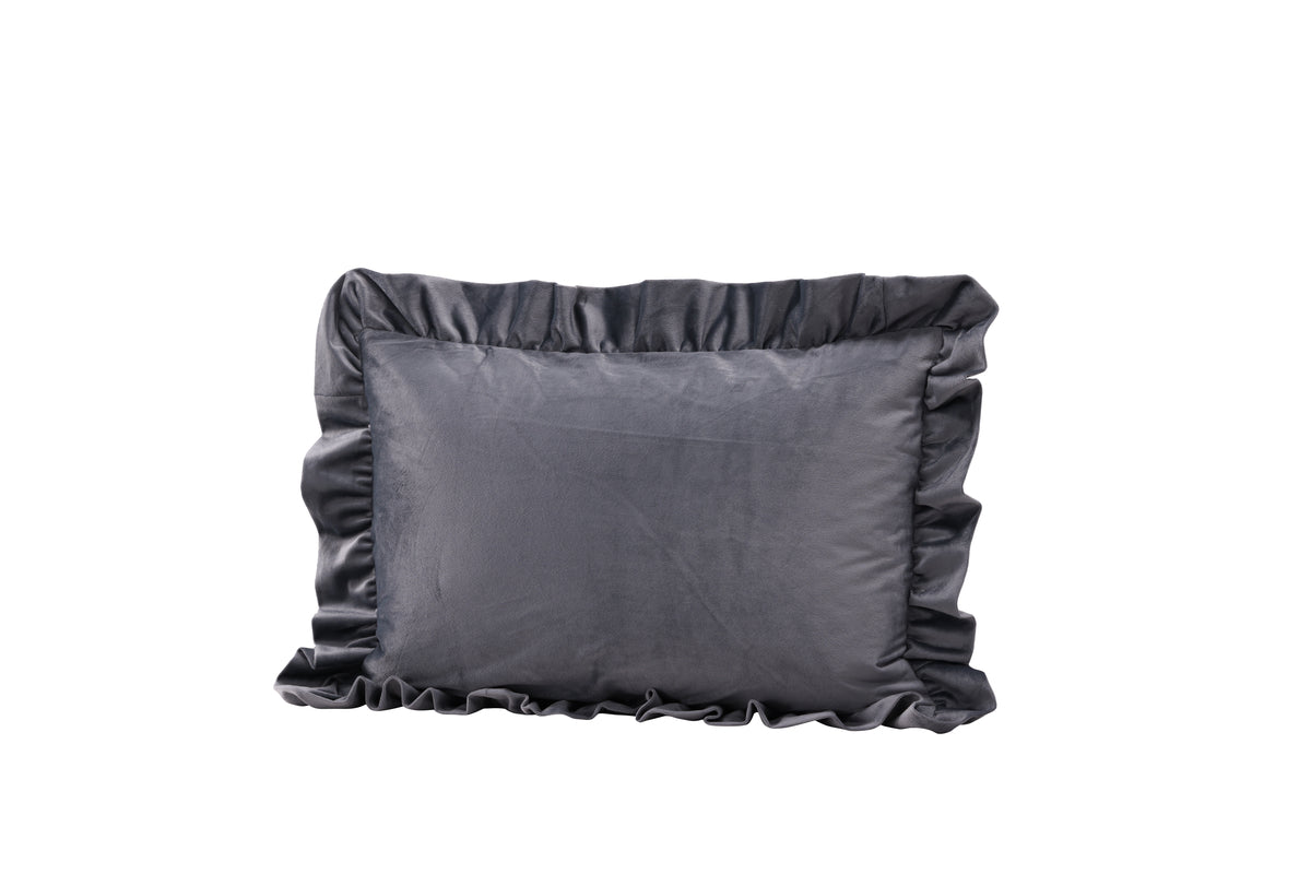 Dette pudebetræk fra serien Hailey har et dekorativt design og et elegant udtryk med sit glansfulde fløjlsstof! Pudeserien Hailey tilbyder pudebetræk af høj kvalitet i forskellige størrelser og farver - alt sammen for at passe bedst til dine ønsker og indretningsstil. Pudebetrækket er indrammet af en dekorativ flæsekant og har en skjult lynlås på bagsiden. Her kommer det i en askegrå mørk nuance, der nemt skaber et luksuriøst blikfang i sofaen eller sengen!