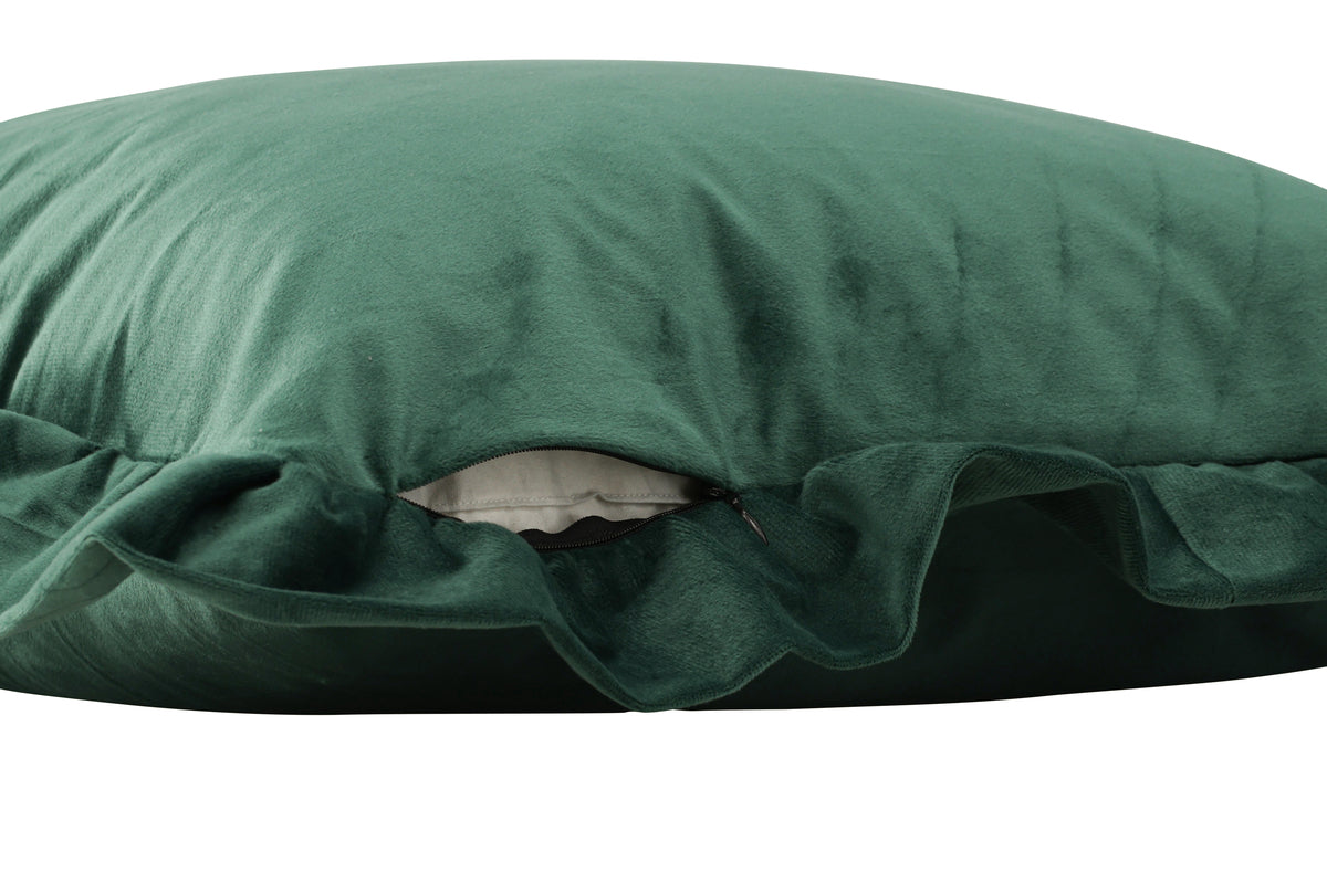 Pudebetrækket fra Hailey-serien i en skovagtig grøn farve skaber hurtigt et elegant og personligt blikfang i dit hjem! Pudeserien Hailey tilbyder kvalitets pudebetræk i forskellige størrelser og farver - alt for at passe dine ønsker og indretningsstil bedst. Pudebetrækket er indrammet af en dekorativ flæsekant og har en skjult lynlås på bagsiden. Det smækre fløjl giver en lækker glans til puden og får den smagfulde grønne farve til at fremhæves på bedste vis!