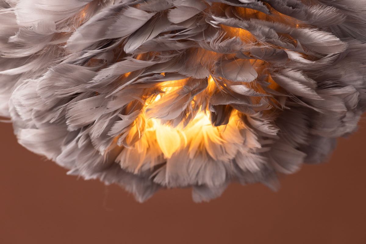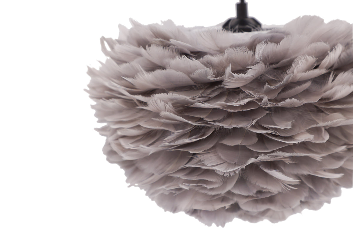 Nicola er en stilfuld og elegant loftlampe, der er perfekt til at skabe en blødere følelse i hjemmet. Lampen har grå kunstige fjer, der bliver en smuk indretningsdetalje og giver et behageligt lys, som skaber en varm og hyggelig følelse i rummet. Placer lampen i soveværelset eller i stuen, så får du garanteret et dejligt blikfang! Nicola findes i flere størrelser.
