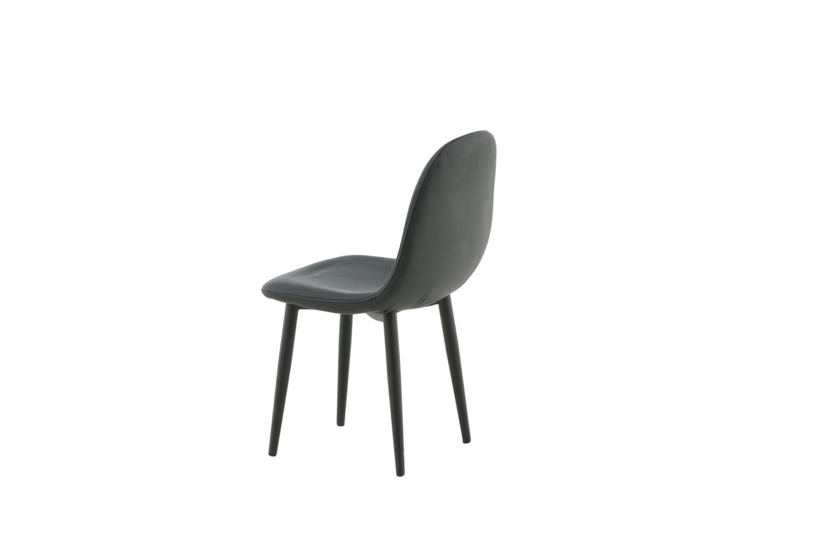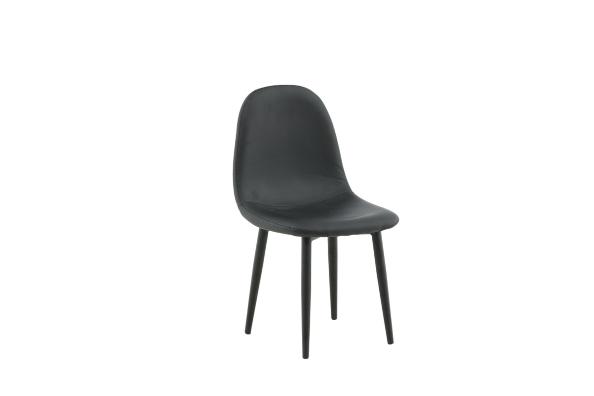 Højstol til børn i et fuldt polstret design, stel og ben i sort pulverlakeret metal samt med en let afrundet ryg og sæde i polstret sort kunstlæder med hvid dekorsøm. Lettere montering kræves.