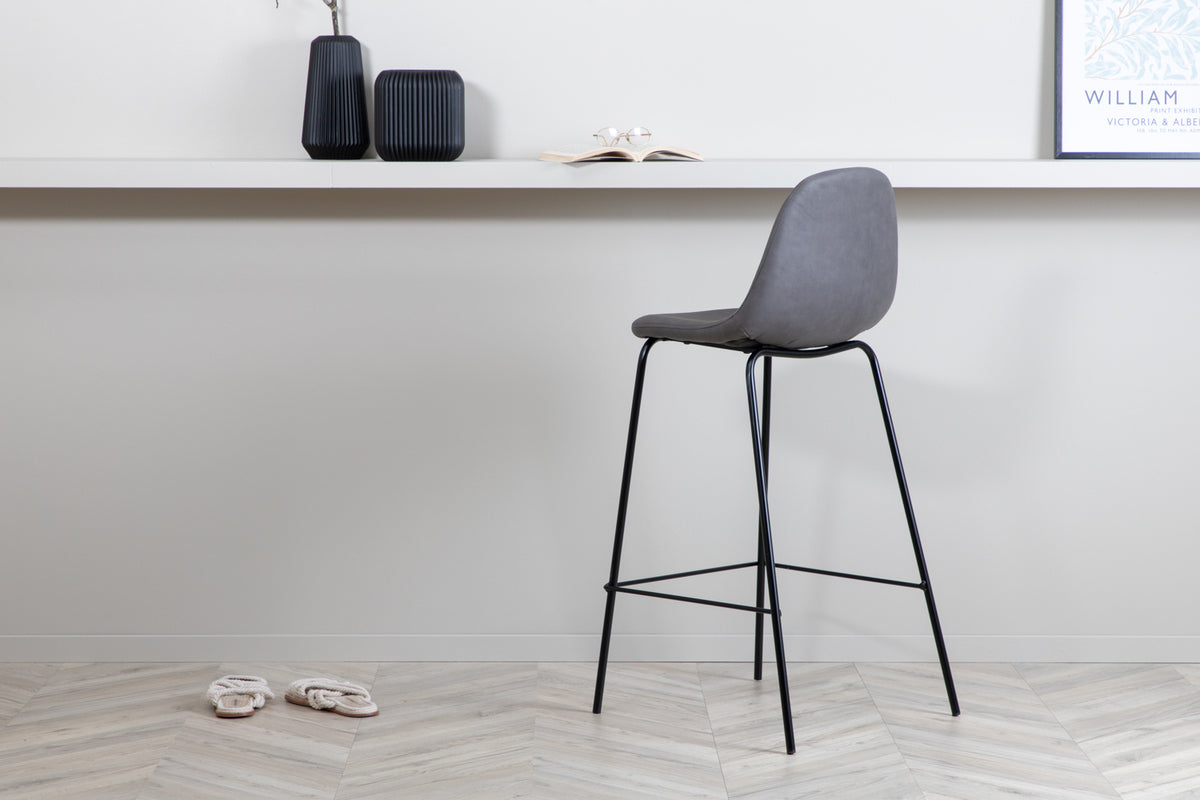 Skab et moderne blikfang, der giver hjemmet en luksuriøs følelse, med hjælp fra barstole fra serien Polar! Designet er gennemtænkt med en fuldpolstret, fræk grå stol med afrundet ryg og sæde i polstret mikrofiber og polyesterlinned samt et smalt stel i sort jern med integreret fodstøtte for ekstra komfort. Lettere montering kræves.