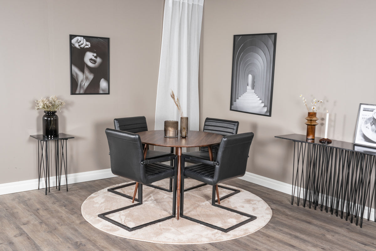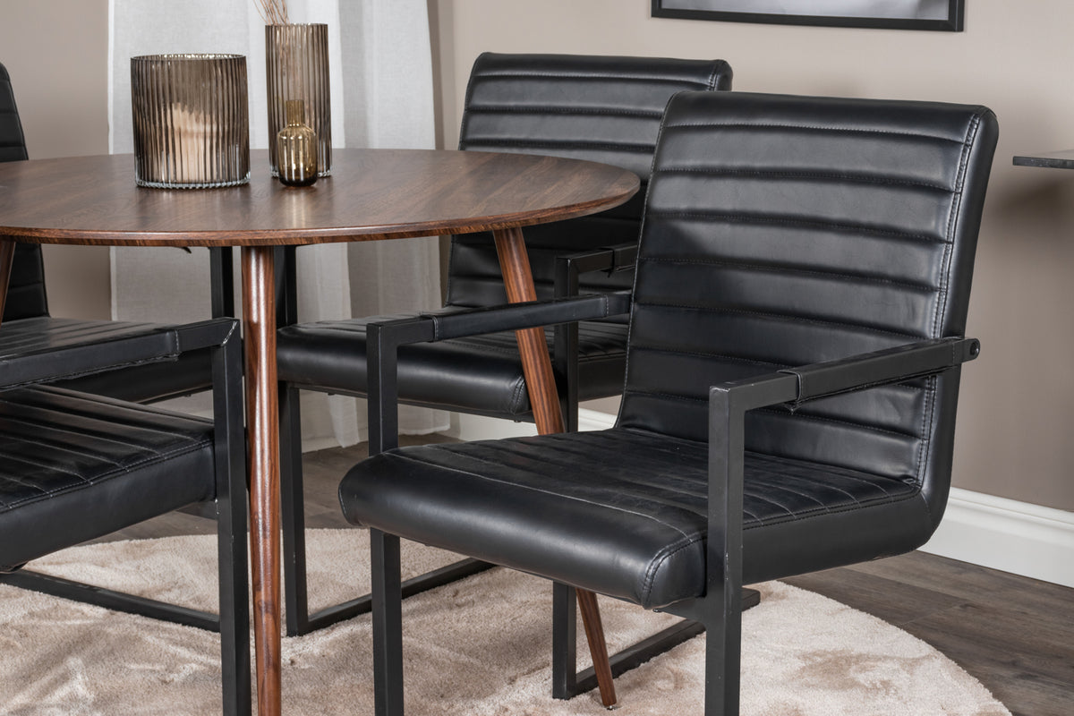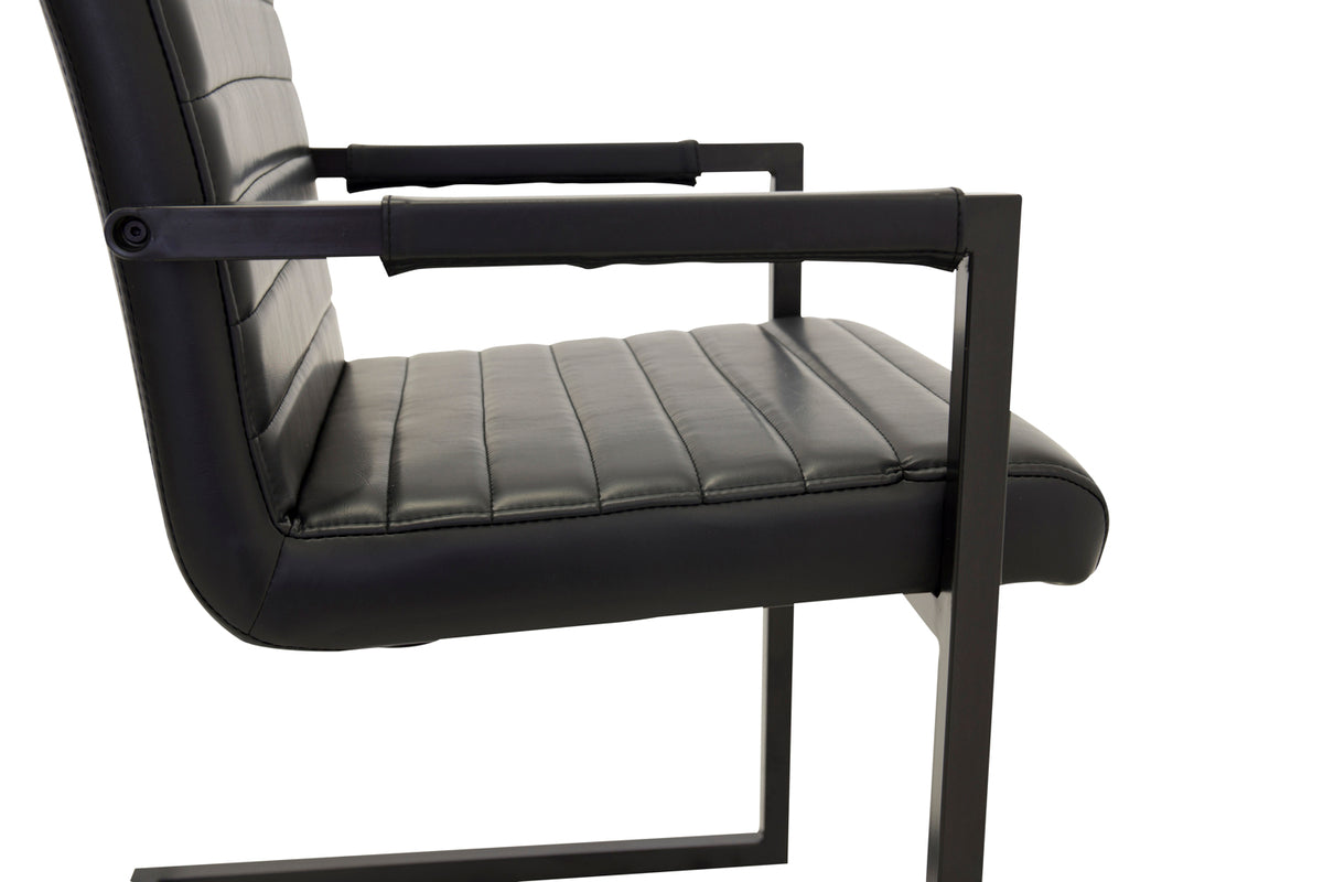 Spisebordsstolen i serien Art tilbyder dig en armstol/armstol i et industrielt fuldt klædt design, med et rustikt underlag og integreret armlæn i sort pulverlakeret metal. Bred ryg og sæde for ekstra komfort i sort kunstlæder med dekorative syninger på indersiden af ryggen og sædet i et flot mønster. Let samling kræves. Plejeanvisning: Ved svære pletter kan en fugtig bomulds klud og et middel beregnet til rengøring af bycast & amp; PU anvendes; prøv først i et ikke-synligt område, da nogle midler kan have forskellige sammensætninger.