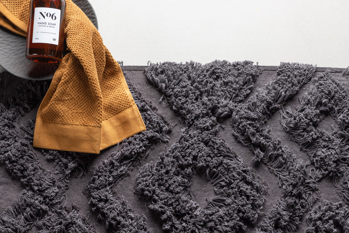 Ikke flere kolde og hårde skridt på gulvet - Hilma badeværelsesmåtten giver dig den fortryllende blødhed og komfort, du fortjener. Lavet af 100% bomuld og med et legende, men struktureret mønster, skaber Hilma dybde og tilføjer nye dimensioner til rummet! Så hver gang du træder på den, omfavner denne badeværelsesmåtte dine fødder med en luksuriøs og blød fornemmelse. Synk ned i dens varme og hyggelige overflade og oplev et nyt niveau af afslapning i dit badeværelse.