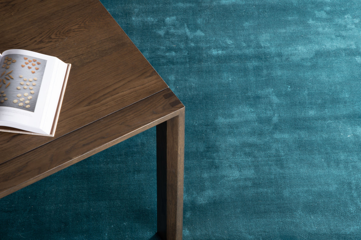 Dekorer dit hjem med et moderne og smukt viskose tæppe i en drømmeagtig havblå nuance! Indra tilbyder populære viskose tæpper i forskellige farver og størrelser, lavet af viskose på toppen og bomuld i bunden. Denne rektangulære skønhed vil helt sikkert imponere i din stue. Det holdbare materiale har en elegant glans, der giver en eksklusiv og silkeagtig fornemmelse til rummet. Match farven med lækre malerier og nyd et trendy helhedsindtryk!