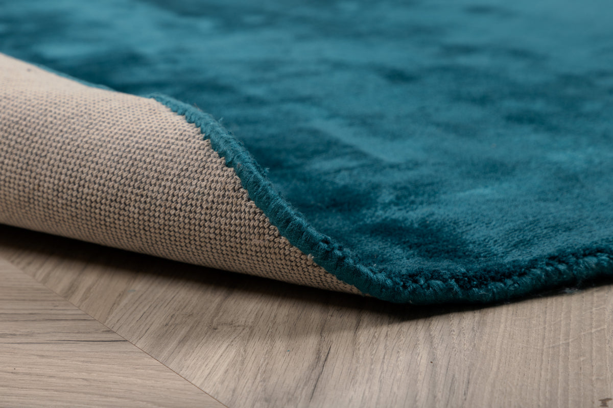 Dekorer dit hjem med et moderne viskose tæppe i en drømmeagtig havblå nuance! Indra tilbyder populære viskose tæpper i forskellige farver og størrelser, lavet af viskose på toppen og bomuld i bunden. Denne runde skønhed vil helt sikkert imponere i din stue. Det holdbare materiale har en elegant glans, der giver en eksklusiv og silkeagtig fornemmelse til rummet. Match farven med lækre malerier og nyd et trendy helhedsindtryk!