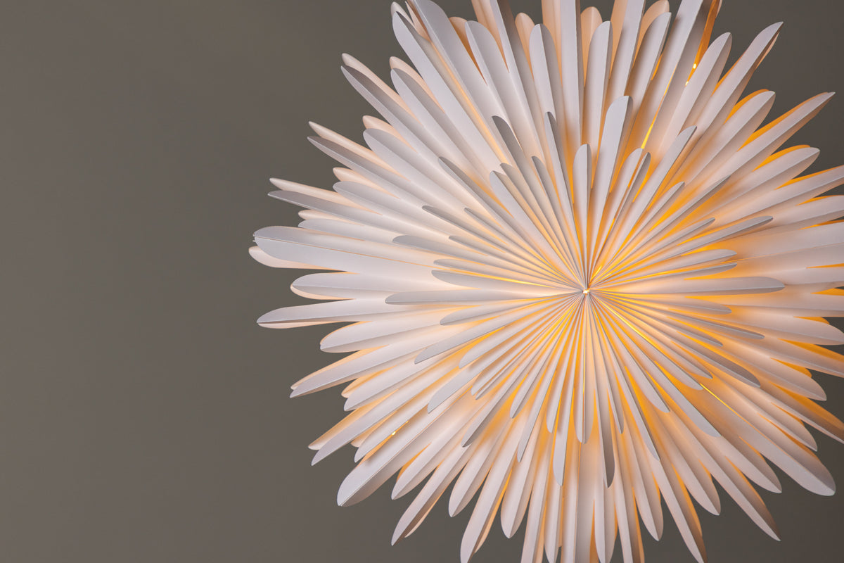 Denne smukke hvide papirstjerne er den perfekte belysning til at skabe en personlig og hyggelig atmosfære i dit hjem! Uanset om det er under de mystiske aftener i efteråret eller festlighederne i julen, vil loftlampen fra Sälen-serien sprede et varmt og indbydende skær, der straks forvandler dit rum til en fredfyldt oase. Denne hvide loftlampe fås i flere forskellige størrelser, så du kan vælge den, der passer perfekt ind i dit rum. Hæng den i køkkenvinduet, soveværelset eller ved sofaen for at sprede det charmerende lys, der længes efter i de mørke dage. Den stjerneformede design af lampen tilbyder også flere praktiske fordele. Takket være det kan lampen jævnt fordele lyset i alle retninger og skabe en behagelig og blød belysning. Placer den, hvor den får mest kærlighed og påskønnelse, og nyd dine yndlingsaktiviteter som at læse, lave håndarbejde eller blot slappe af i en atmosfære fyldt med ro og harmoni! Dimensioner: 60 cm.