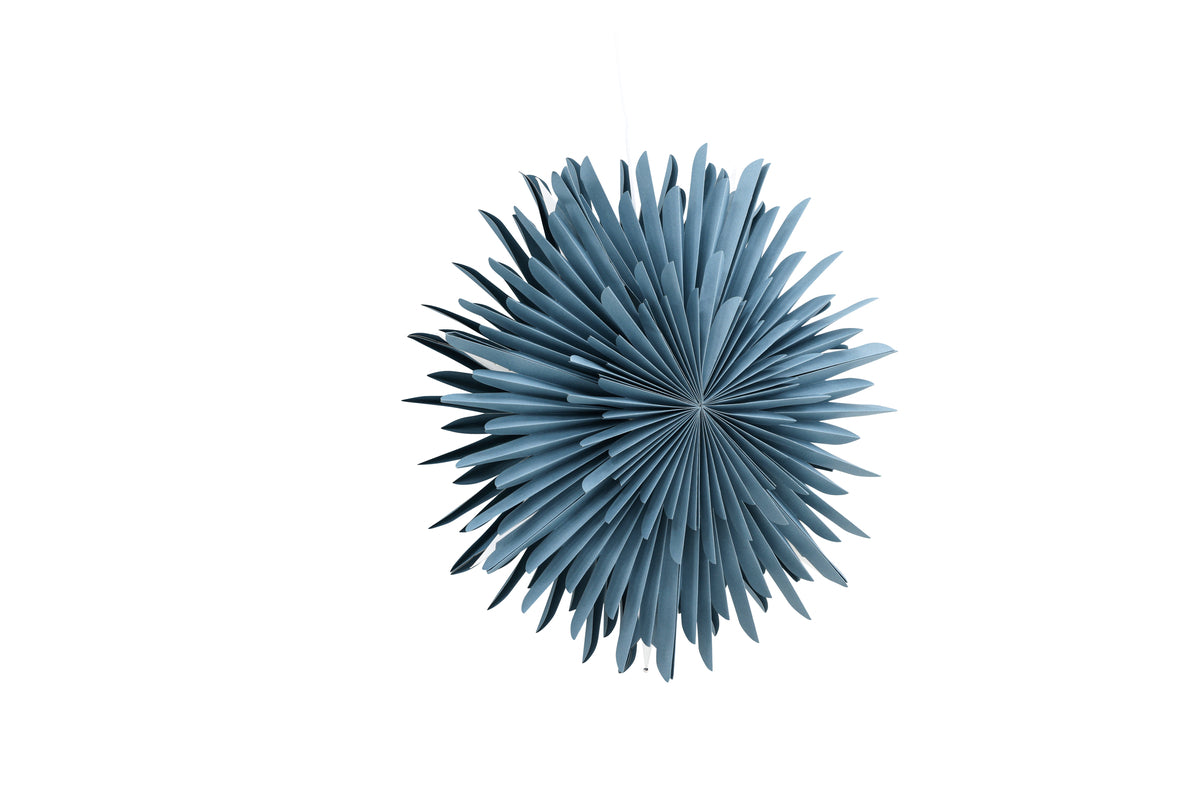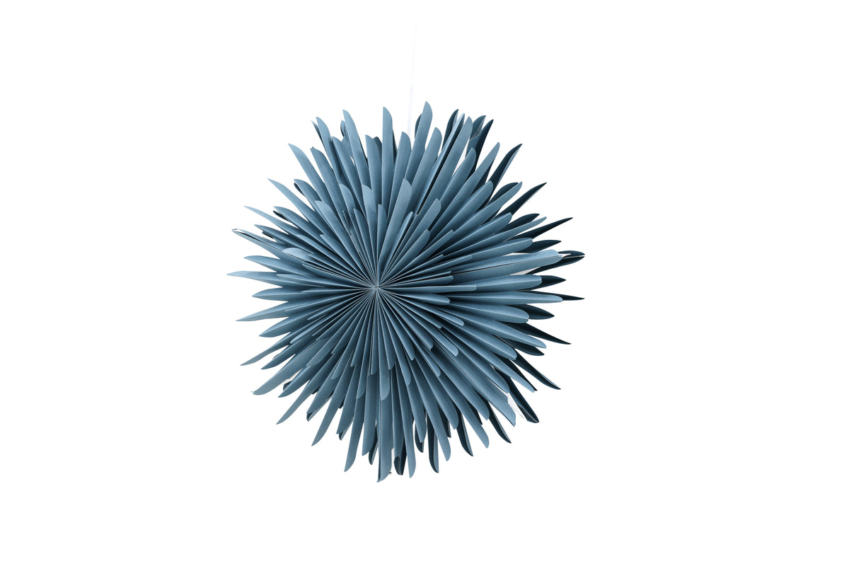 Med loftlampen Sälen kan du skabe en varm og hyggelig atmosfære både i de mørke dage i vinter og efterår samt under de festlige julefejringer. Denne grå/blå papirstjerne, formet som en blomstrende stjerne i nuancer af havet, vil helt sikkert imponere dig og dine gæster. Sälen er lavet af flere lag af foldet papir, hvilket giver en harmonisk og behagelig belysning, samtidig med at den skaber en smuk dybde i rummet. Det diskrete hvide kabel gør, at lampen naturligt smelter ind i ethvert rum. Vælg mellem forskellige farver og størrelser for at finde den perfekte Sälen-lampe, der passer bedst til dit hjem. Uanset om du foretrækker et subtilt touch af blå nuancer eller en mere elegant farvekombination, vil Sälen sprede varme og hygge i dit hjem! Dimensioner: 60 cm.