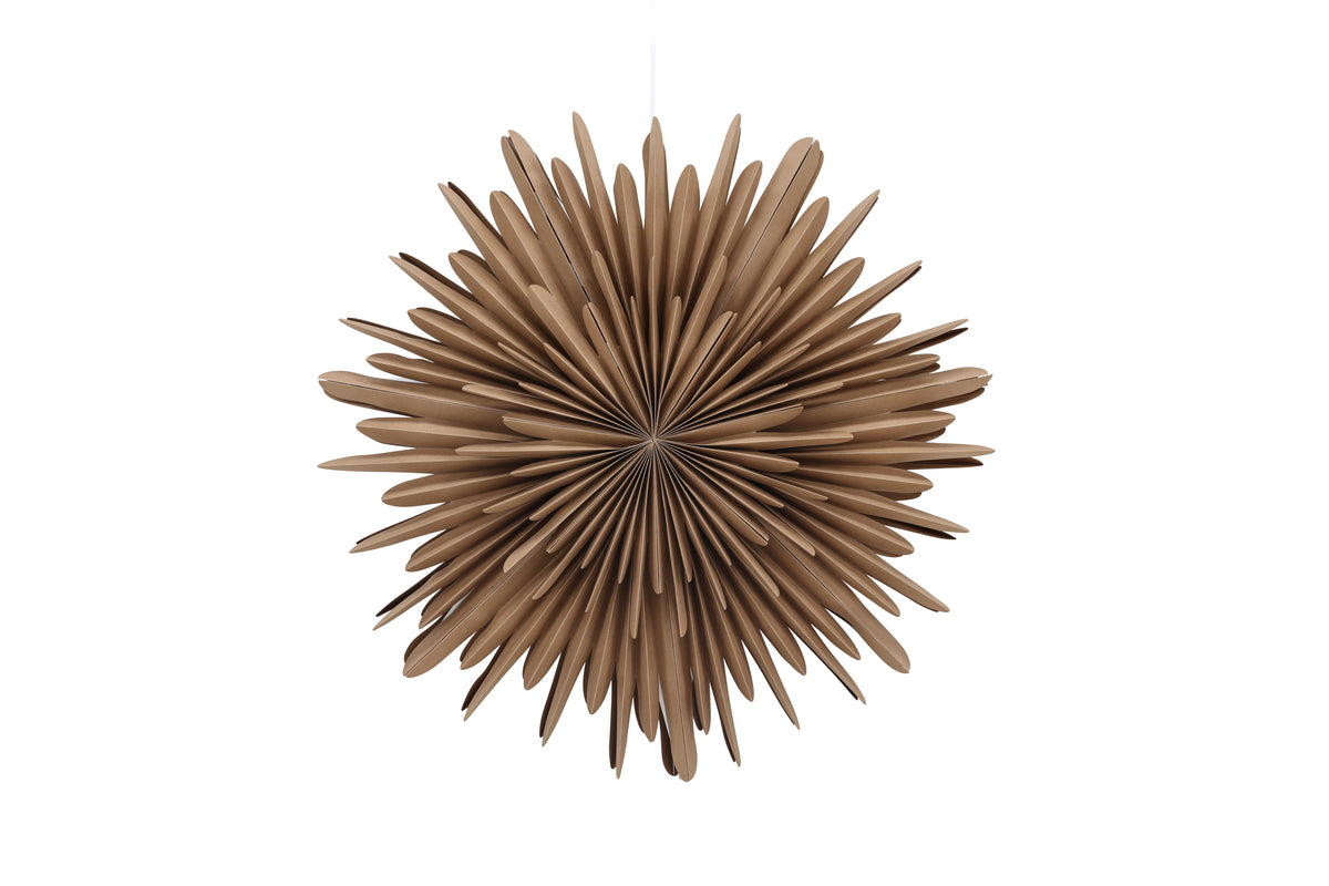 Atmosfærisk, hyggelig og indbydende – den brune papirstjerne fra Sälen-serien skaber straks en rolig følelse i dit hjem med sit varme skær og smukke design! Denne loftlampe er formet som en blomstrende stjerne og vil hæve dit interiør til nye højder af charme i de mørke vinterdage.