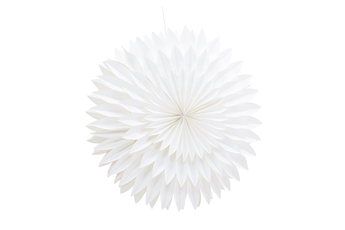Storlien - en hvid papirstjerne i flere lag, der skaber en hyggelig stemning i dit hjem! Uanset om det er i de mystiske efterårsaftener eller festlighederne i julen, vil loftlampen fra Storlien-serien sprede et varmt og indbydende lys, der straks forvandler dit rum til en fredfyldt oase. Denne hvide loftlampe fås i forskellige størrelser, så du kan vælge den, der passer perfekt ind i dit rum. Hæng den i køkkenvinduet, soveværelset eller ved sofaen for at sprede det charmerende lys, som man længes efter på mørke dage. Takket være lampens papirlag skabes der også en smuk følelse af dynamik, og lampen får en helt anden dybde med flere dimensioner. Placer den, hvor den får mest kærlighed og påskønnelse, og nyd dine yndlingsaktiviteter som at læse og lave håndarbejde under et behageligt lys fra en festlig loftlampe, der hurtigt fanger blikket! Dimensioner: 80cm.