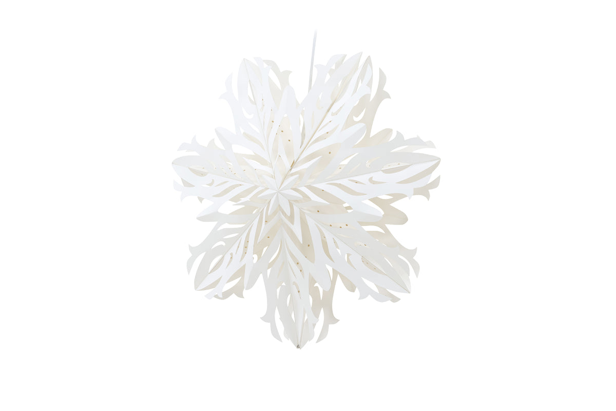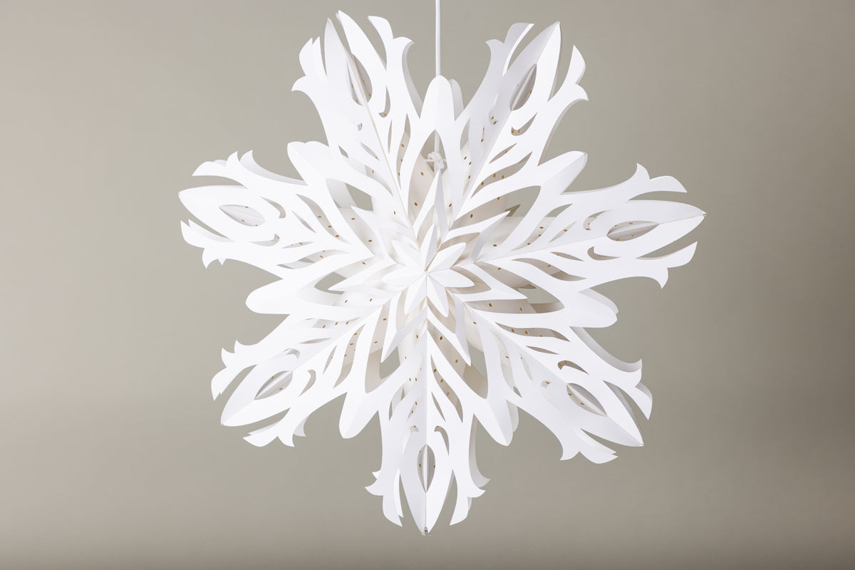Loftlampen fra Hundfjället-serien vil sætte stemningen for dit interiør denne vinter med sit smukke design og hyggelige lys! Denne hvide papirstjerne, formet som en snefnug, giver dit rum en stemningsfuld charme og spreder et behageligt skær i det rum, den placeres i. Denne snefnug er ikke kun perfekt til de mørke vinterdage, men den skaber også en festlig atmosfære under julefejringer. Hæng den i stuen, spisestuen eller soveværelset for at skabe en hyggelig og varm atmosfære. Den hvide ledning blander sig glat mod den lyse væg eller vindue, og med et enkelt tryk på en knap kan lampen tændes og slukkes. Forvandl dit hjem til et sted, hvor du kan undslippe hverdagens stress og omfavne en følelse af ro og harmoni. Det skal føles hyggeligt at træde indenfor døren og blive mødt af de smukke sæsonbestemte detaljer! Dimensioner: 60cm.