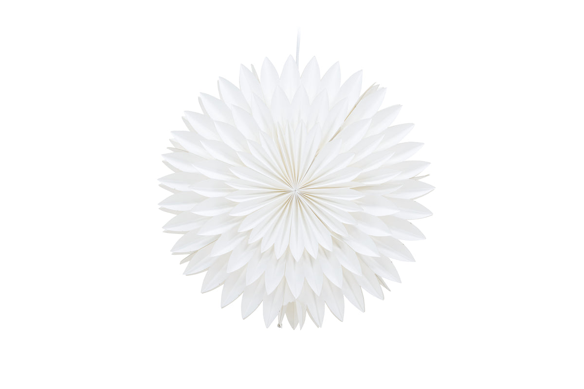 Storlien - en hvid papir stjerne med flere lag, der skaber en hyggelig følelse i dit hjem! Uanset om det er under de mystiske efterårsaftener eller festlighederne i julen, vil loftlampen fra Storlien serien sprede et varmt og indbydende skær, der straks forvandler dit rum til en fredfyldt oase. Denne hvide loftlampe fås i forskellige størrelser, så du kan vælge den, der passer perfekt ind i dit rum. Hæng den i køkkenvinduet, soveværelset eller ved siddeområdet for at sprede det charmerende lys, der længes efter i de mørke dage. Takket være lampens lag af papir skabes der også en smuk følelse af dynamik, hvilket giver lampen en helt anden dybde med flere dimensioner. Placer den, hvor den får mest kærlighed og påskønnelse, og nyd dine yndlingsaktiviteter som læsning og håndværk under et behageligt skær fra en festlig loftlampe, der hurtigt fanger opmærksomheden! Dimensioner: 46cm.