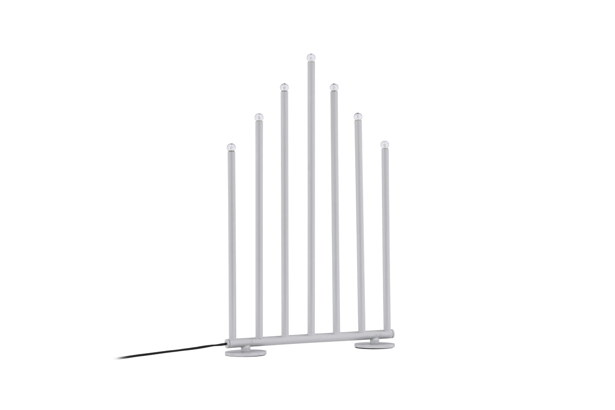 Björnfjället er ikke en almindelig adventslysestage – denne sølvfarvede trekantede adventslysestage vil sprede varme og ro i dit hjem i den kolde vintersæson! Björnfjället er lavet af sølvfarvet stål og står på en smal base, der understøtter syv slanke lys, der kaster et behageligt skær i rummet. Men her er det bedste – du kan nemt dæmpe lyset for at skabe den perfekte atmosfære til enhver lejlighed. Uanset om du ønsker en hyggelig og afslappende stemning eller et livligt og strålende lys, giver Björnfjället dig mulighed for at tilpasse belysningen efter dine præferencer. Denne lampe er ikke kun et teknisk mesterværk, men også et alsidigt interiørdetalje, der passer perfekt ind i forskellige stilarter. Derudover fås Björnfjället i to forskellige størrelser og farver, så uanset om du har et stort eller lille rum, kan du finde den perfekte pasform. Så hæv niveauet af stil og hygge i dit hjem denne vinter og nyd et smukt interiørdetalje fra Björnfjället serien! Dimensioner: 50cm.