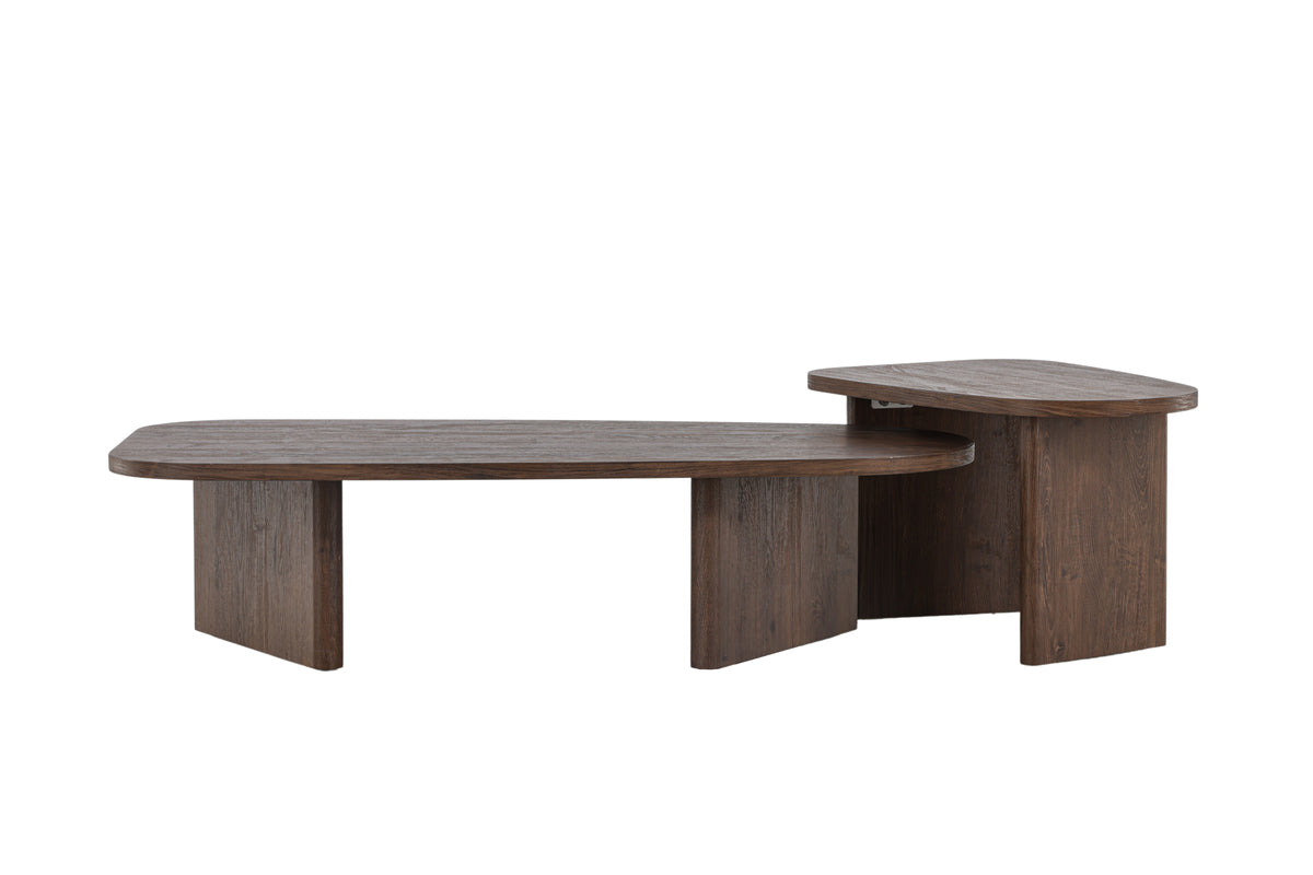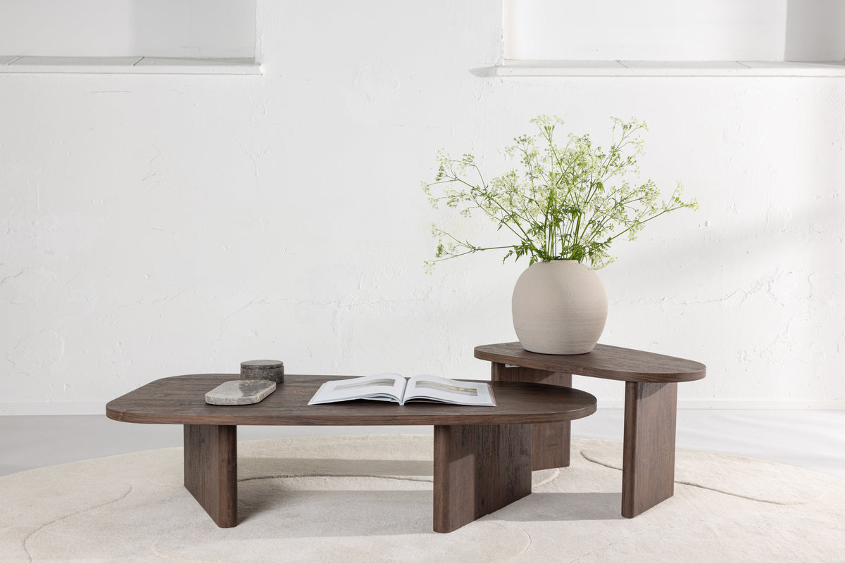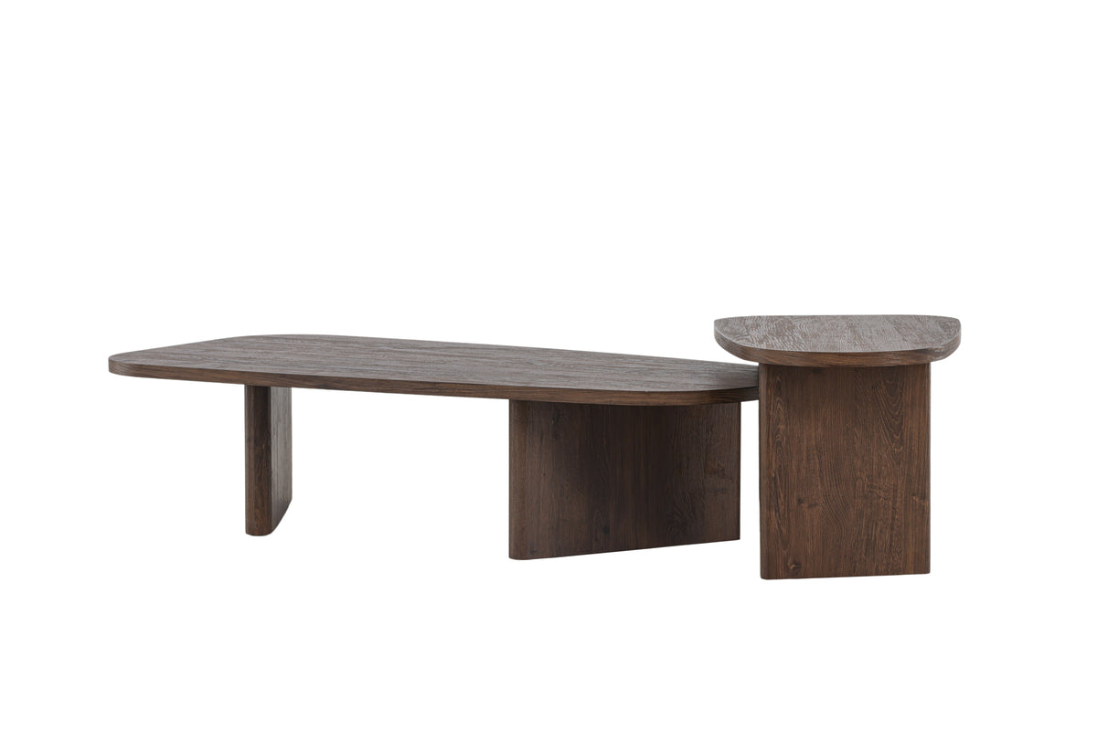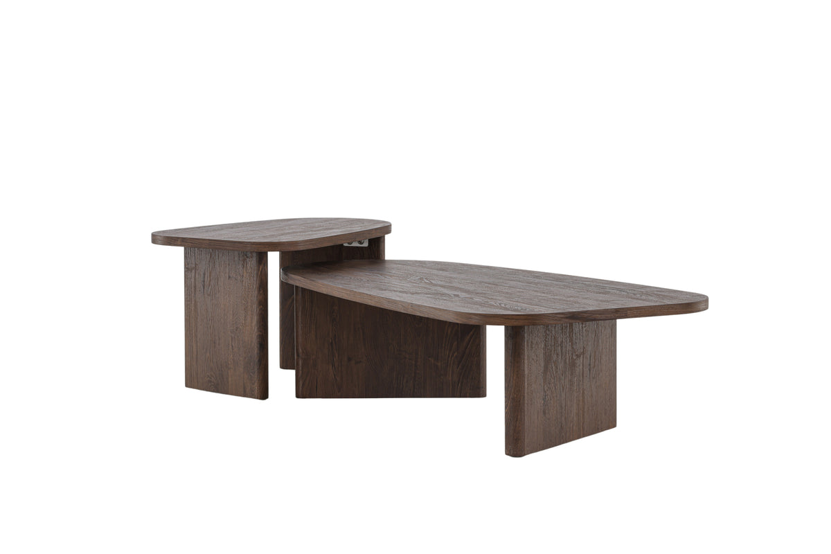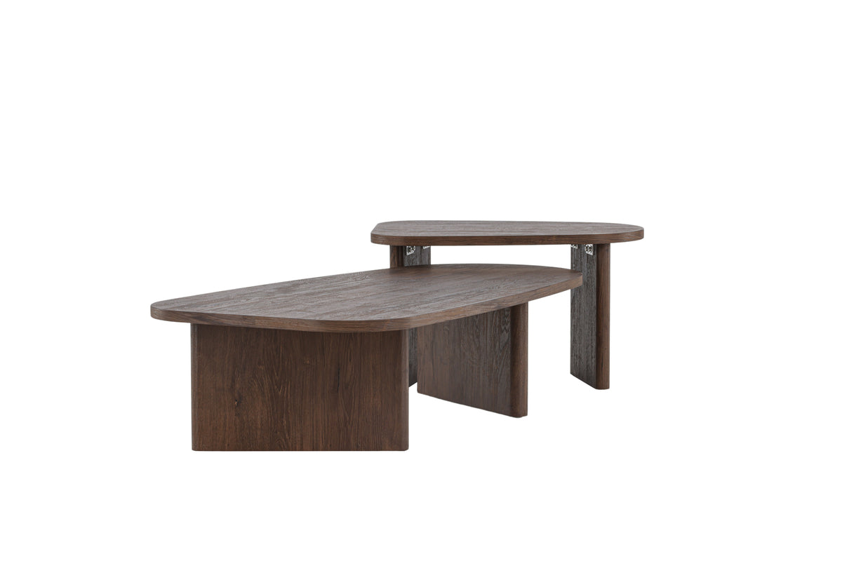 Det andet bord i sættet er et sidebord med praktiske mål på 70x45 cm. Det er ideelt til at bruges ved siden af sofaen eller lænestolen som en ekstra overflade til at stille bøger, blade eller fjernbetjeninger.