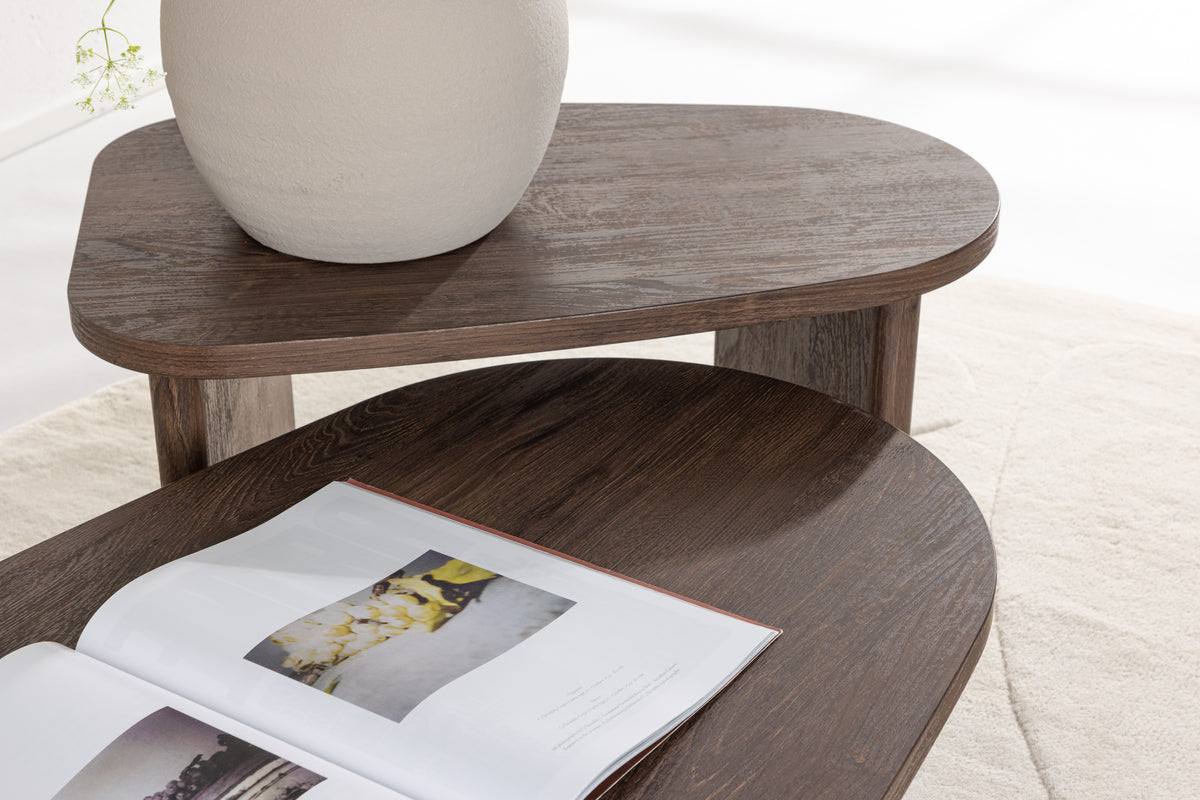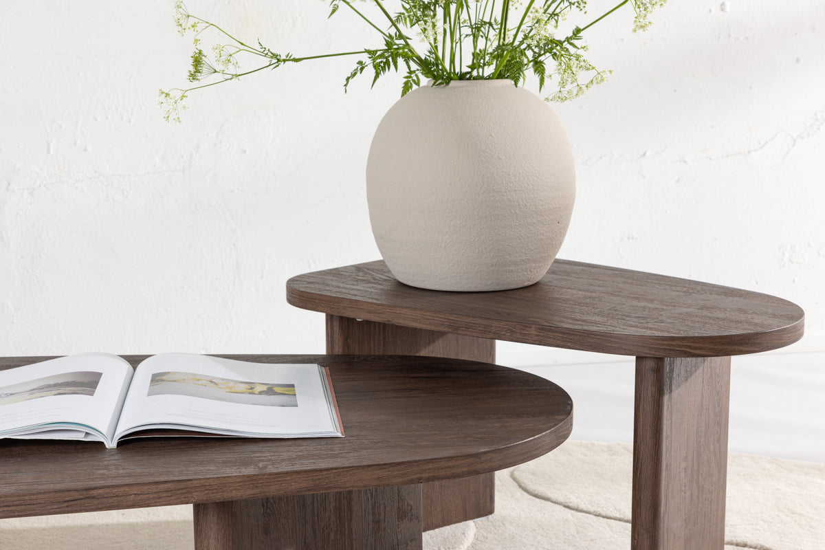 Opdag den elegante Grönvik sofabordsduo i farven Mocca. Dette stilfulde sæt består af to borde, der er perfekte supplementer til hinanden både i størrelse og stil.