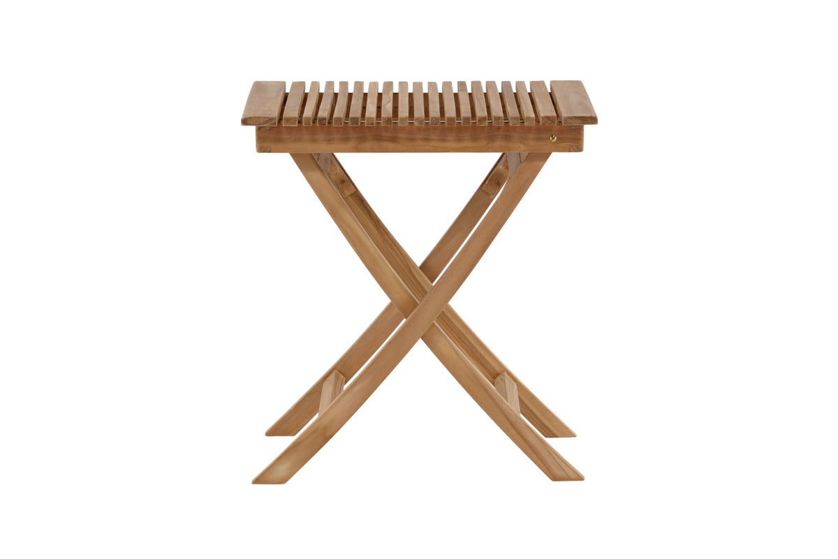 Bordet GHANA er et spisebord i smagfuld teak, der kan foldes sammen, både pænt og praktisk! Designet er stilrent og tidløst, hvilket gør, at det kan bruges længe. Perfekt til morgenmad ude på en solrig sommerdag!