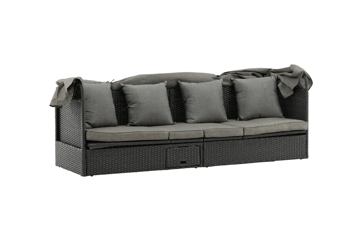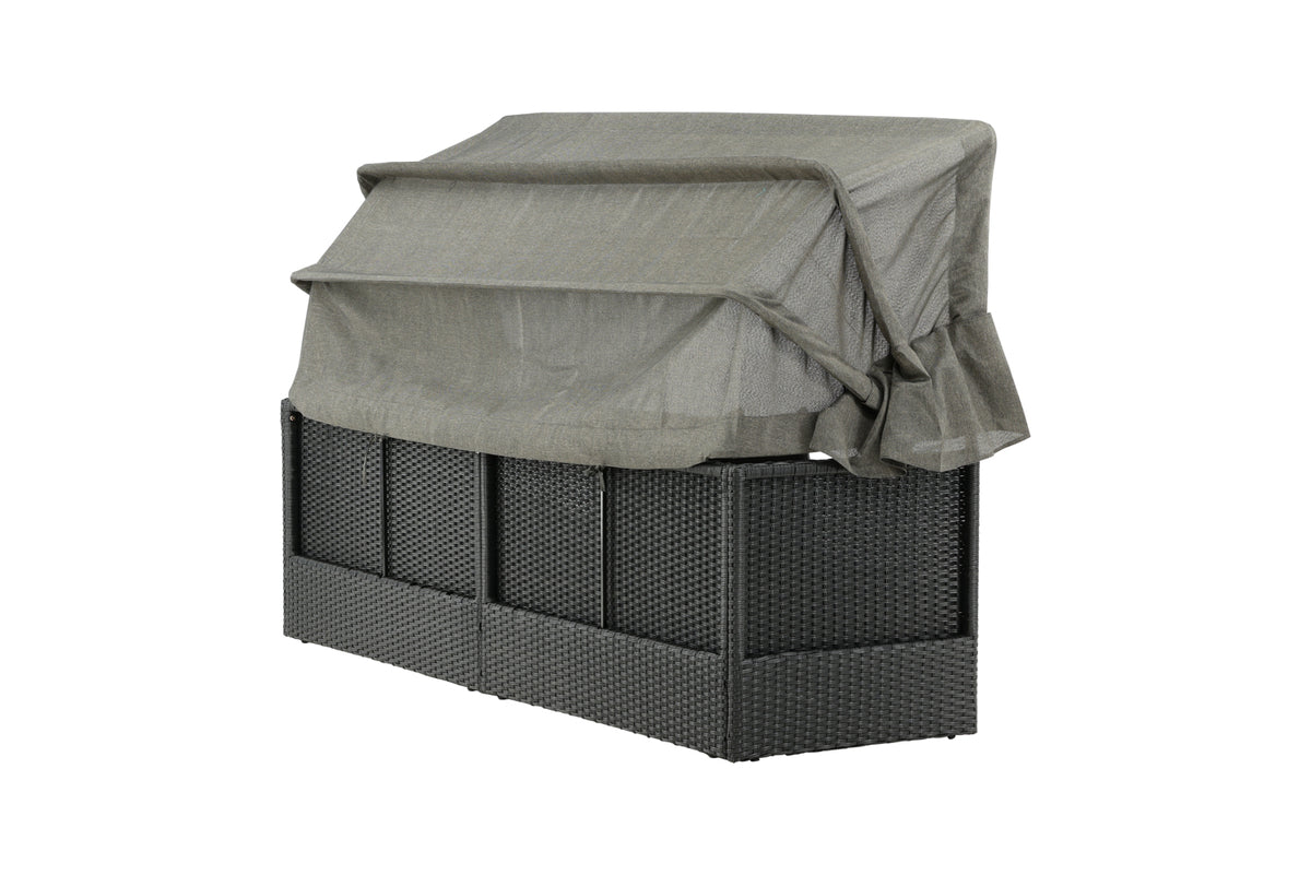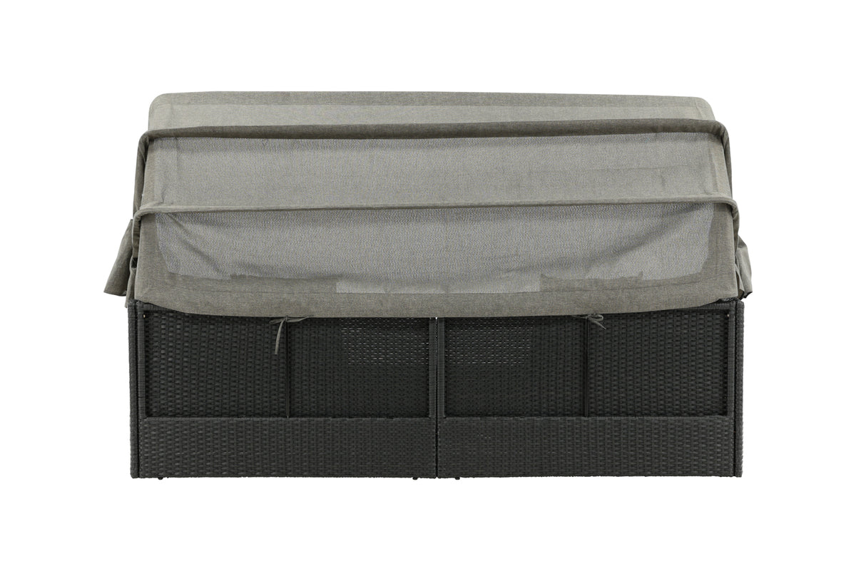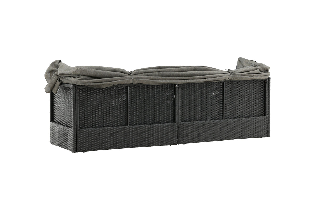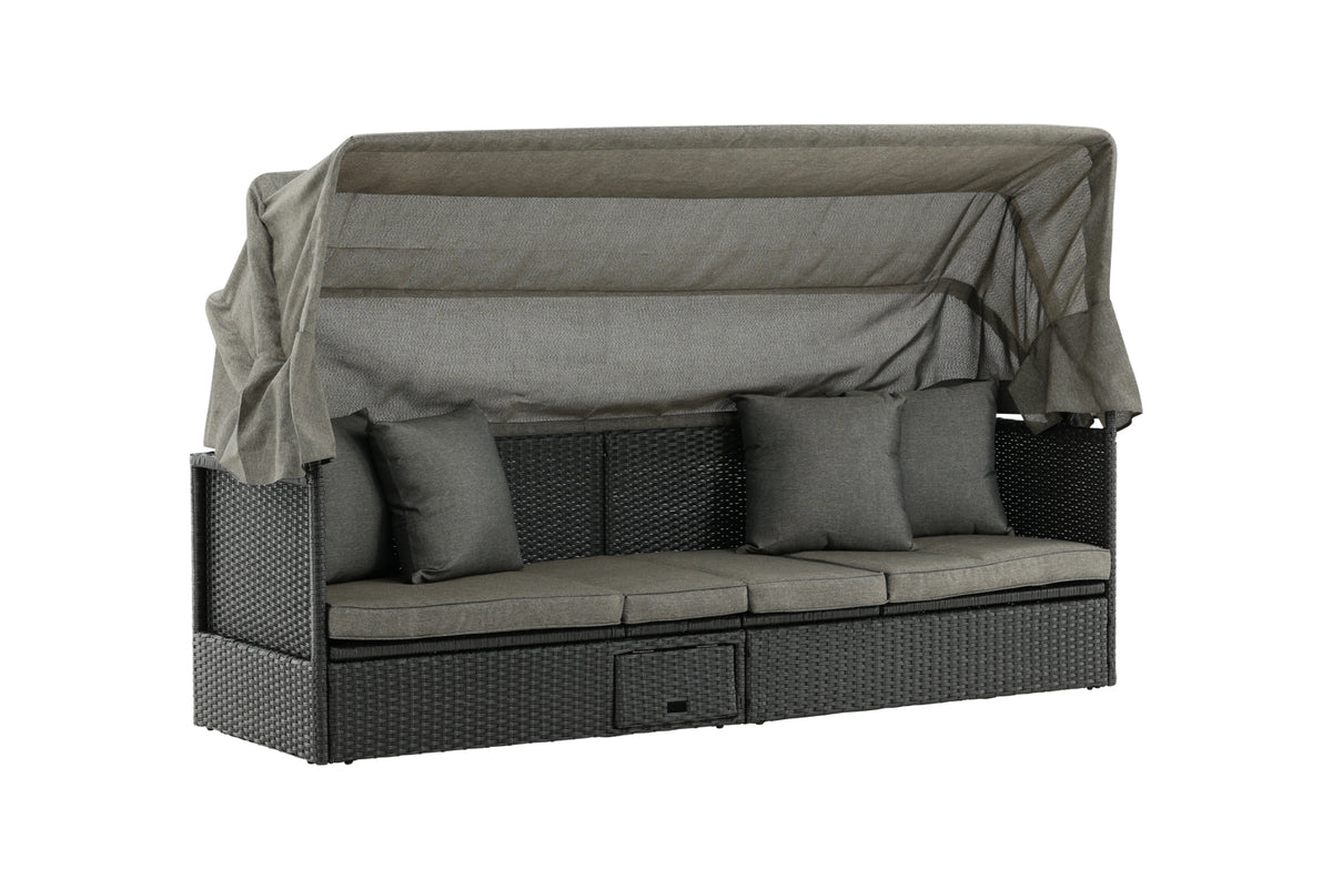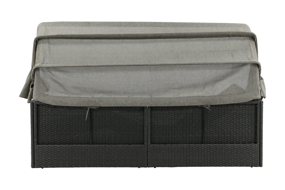 Nyd dovne dage i solen i vores solseng Nopy! Solsengen er lavet af kunstige rattan, og med den dejlige parasol kan du nemt vælge, om du vil ligge i skyggen eller i solen.