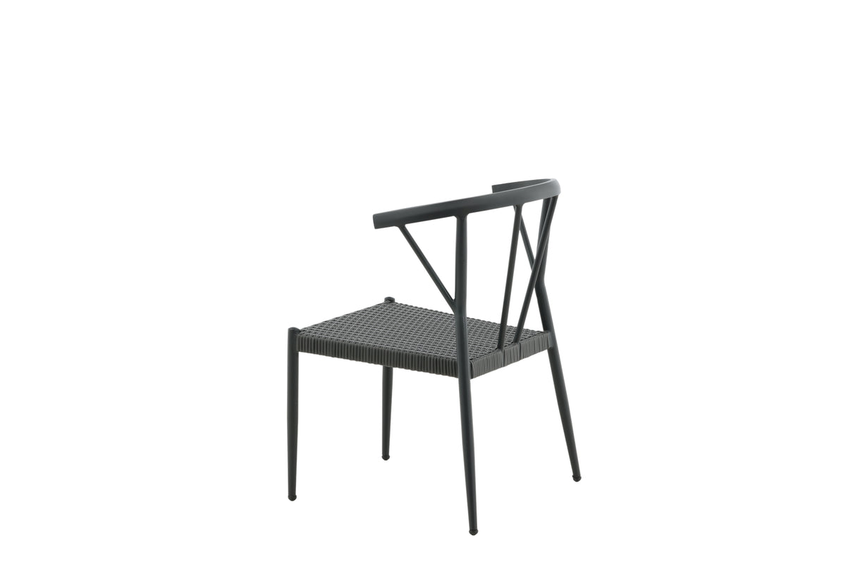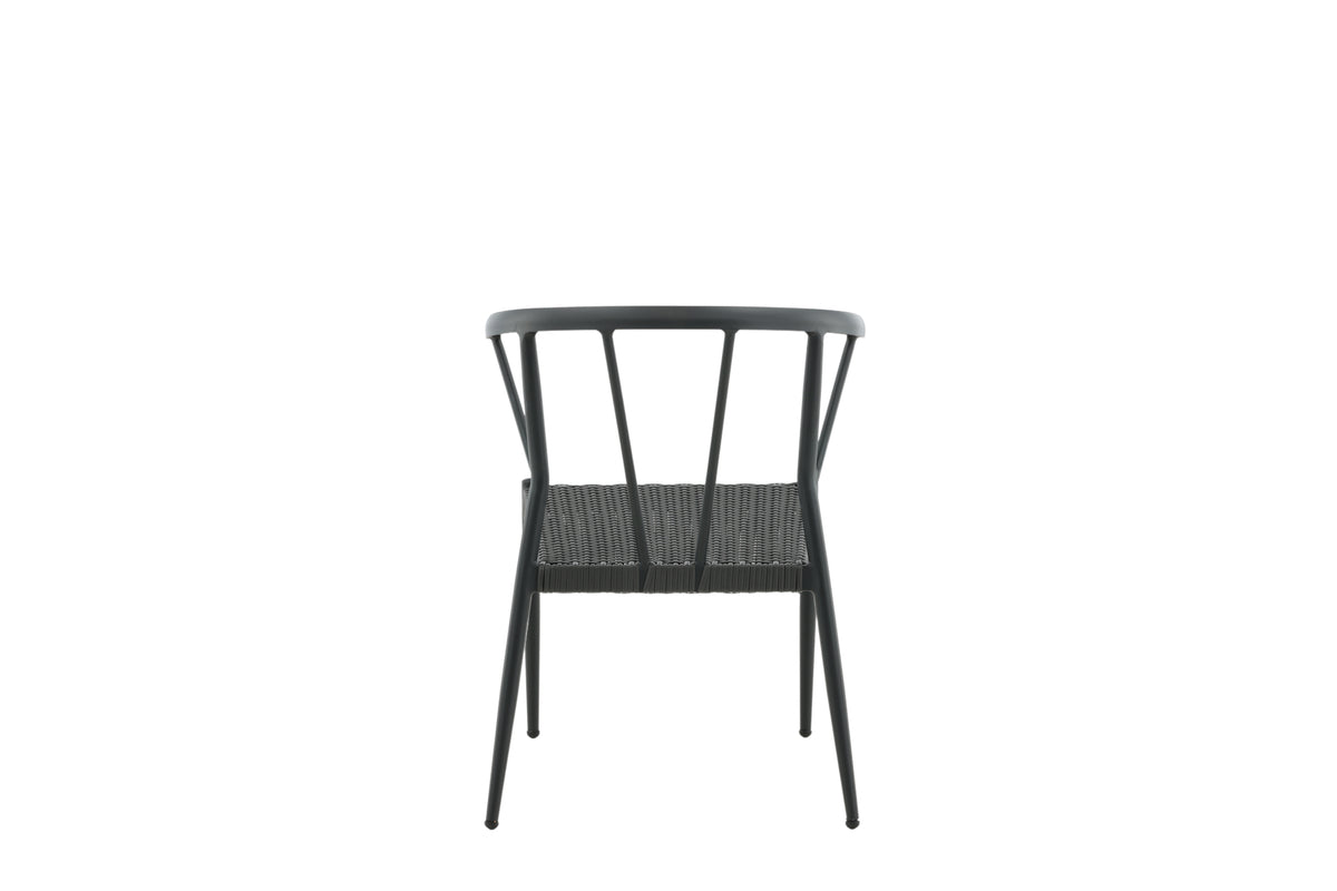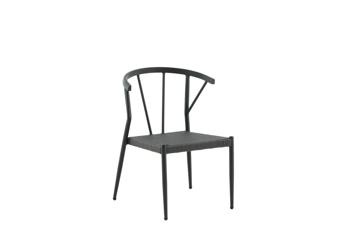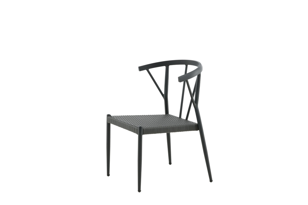 En klassisk spisebordsstol lavet af aluminium med en pude i kunstigt rattan. Giver en moderne følelse til din terrasse eller altan og er nem at flytte. Match stolen med dit yndlingsbord, så får du et perfekt sted til middage med venner og familie! Stolen er stabelbar.