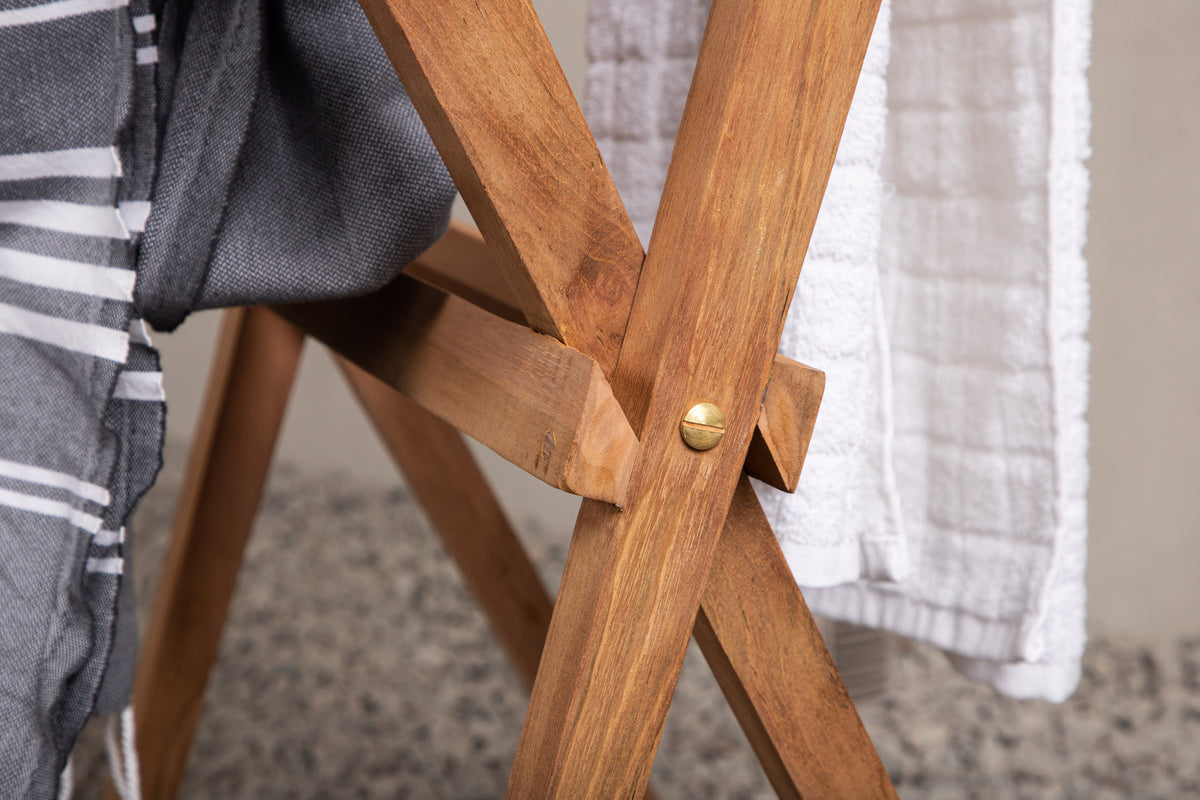 En moderne og elegant knagerække i teak, der passer perfekt som en fin indretningsdetalje eller kombineret opbevaring ved at hænge håndklæder eller andre tekstiler på. Knagerækken er nem at folde sammen og opbevare og passer i alle typer hjem.