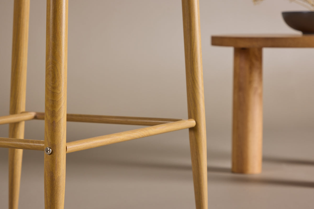 Plaza barstol har et komfortabelt design med ben i egetræ -folieret metal og integreret fodstøtte for ekstra komfort. Ryg og sæde i komfortabelt blå polyesterstof, der er blødt polstret. Let montering er påkrævet. Indfør luksus i hverdagen med behagelige barstole, der forbedrer den sociale atmosfære i køkkenet!