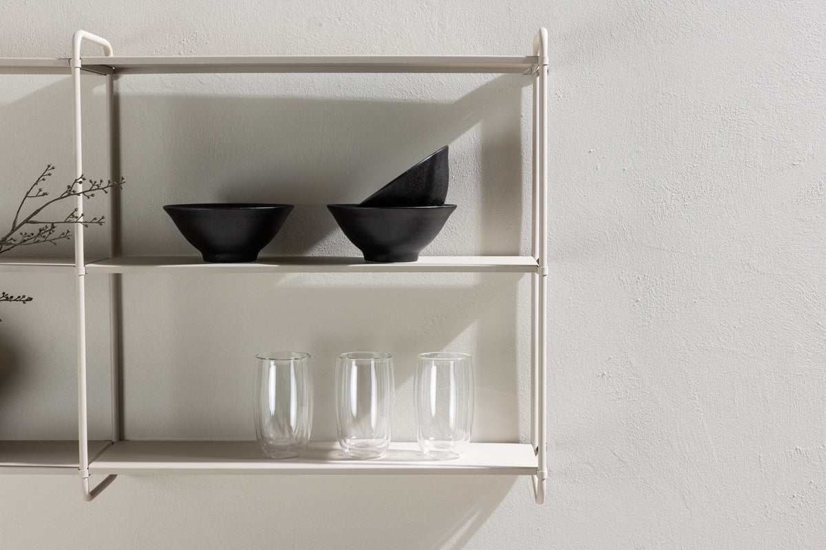 Skab en personlig stil i dit hjem gennem smart opbevaring med vores smukke beige væghylde fra Lyon-serien! Designet til at passe ind i den moderne, skandinaviske indretningsstil og forbedre dit hjem på en elegant måde. Her får du en væghylde, der kombinerer tidløst og minimalistisk design med praktisk funktionalitet. Denne væghylde er lavet af beige pulverlakeret jern, der problemfrit blander sig med forskellige stilarter og hjem. Dens klassiske design er tidløst og tilføjer et elegant præg til dit rum. Med tre smalle hylder tilbyder Lyon en stilfuld plads til dine smukke dekorationer. Her kan du arrangere alt fra bøger til planter og lys. Hold dit rum organiseret og elegant. Men måske vigtigst af alt, giver Lyon væghylde ikke kun opbevaring, men også muligheden for at udtrykke din stil og skabe et personligt rum, der både er velorganiseret og smukt. Hæng den op på væggen og lad dit rum blive hyggeligt på den mest moderne måde muligt! Lyon fås også i forskellige farver og størrelser for bedst at tilpasse sig din smag!