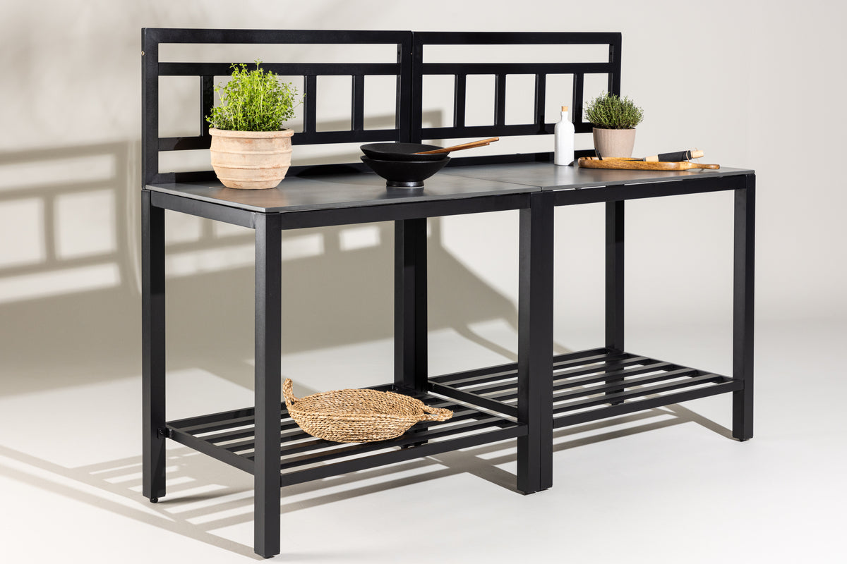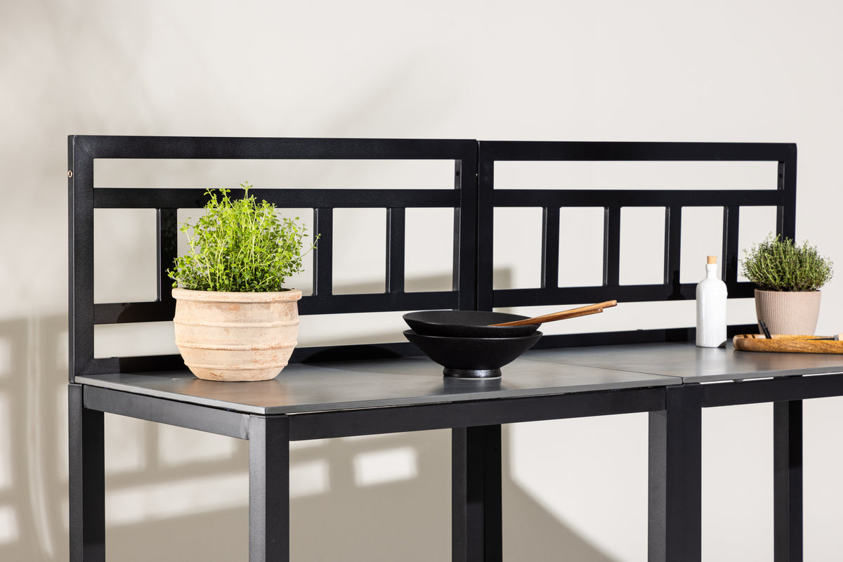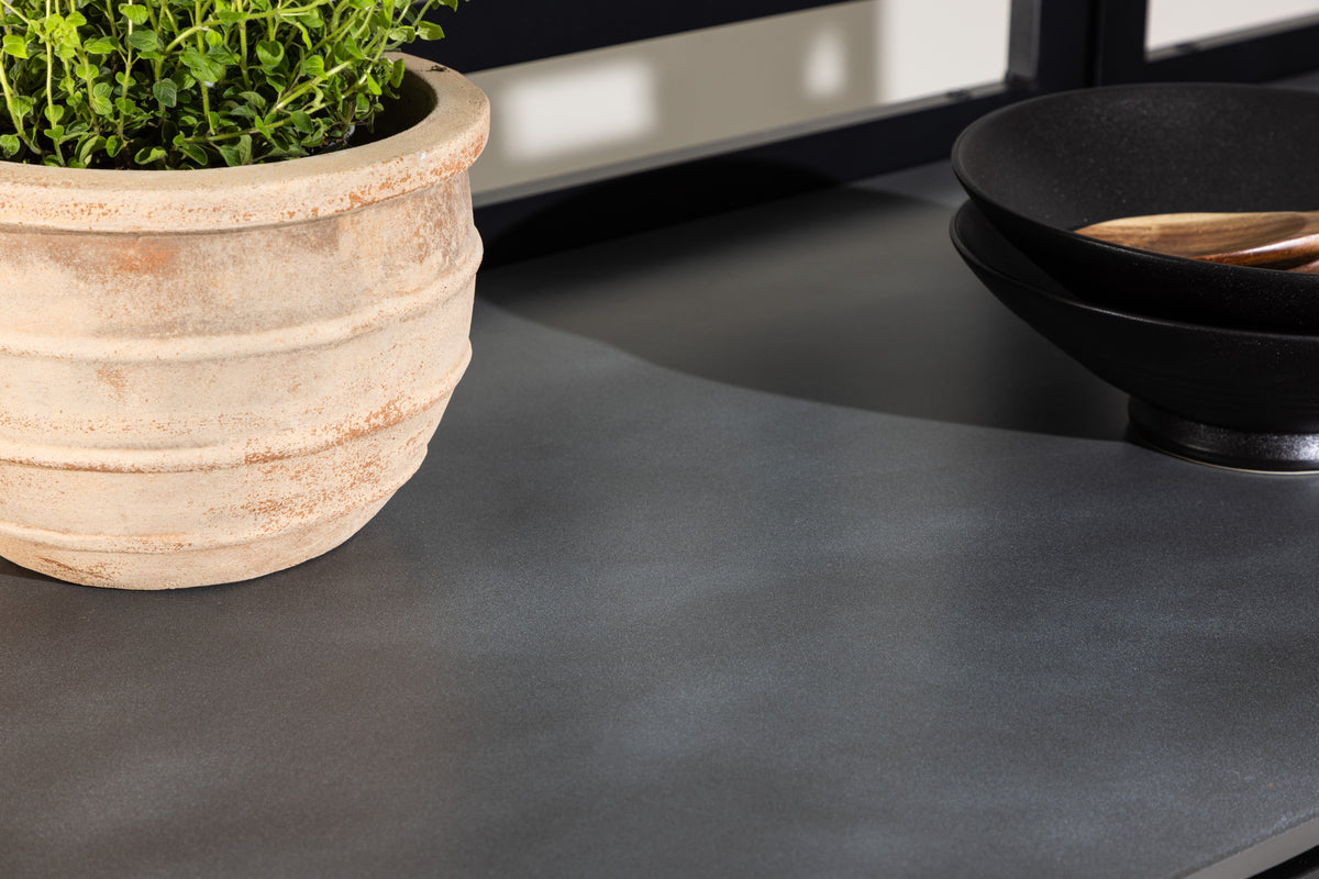 Opdag Alicante, den stilfulde udendørs køkkenø, der kombinerer elegance og funktionalitet på bedste vis. Med en robust sort ramme og en elegant grå overflade er Alicante både stilfuld og nem at rengøre, perfekt til madlavning og sociale sammenkomster udendørs. Du kan bruge Alicante som en selvstændig enhed, ideel til mindre rum og enklere behov, eller udvide den ved at tilføje flere dele fra Alicante-serien for at skabe et stort, rummeligt udendørs køkken skræddersyet til dine specifikke behov. Køkkenøen er udstyret med en praktisk hylde til ekstra opbevaring af køkkenredskaber, grilltilbehør eller andre nødvendigheder, hvilket gør madlavning både lettere og mere organiseret. Med sit slanke design og praktiske funktioner bliver Alicante et uundgåeligt supplement til din have eller terrasse, perfekt til alt fra en simpel udendørs middag til en større grillfest.