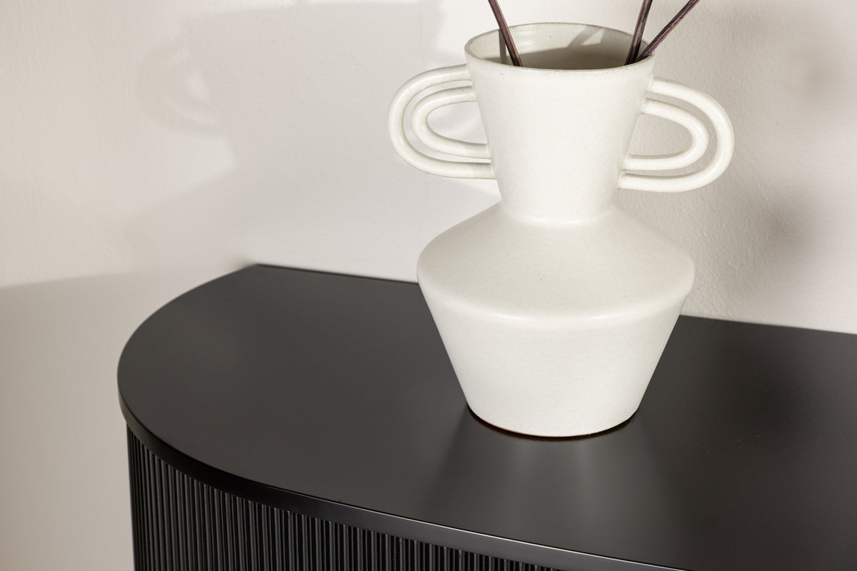 Lad os præsentere Loca, den ultimative kombination af stil og funktionalitet til dit moderne hjem. Dette sidebord er lavet af MDF-materiale i en dristig sort nuance og prydet med sublime ribbede detaljer, der løfter det til et niveau over det ordinære. Uanset om du er på udkig efter et sidebord eller et TV-stativ, tilbyder Loca et fleksibelt design, der passer sømløst ind i din indretning.