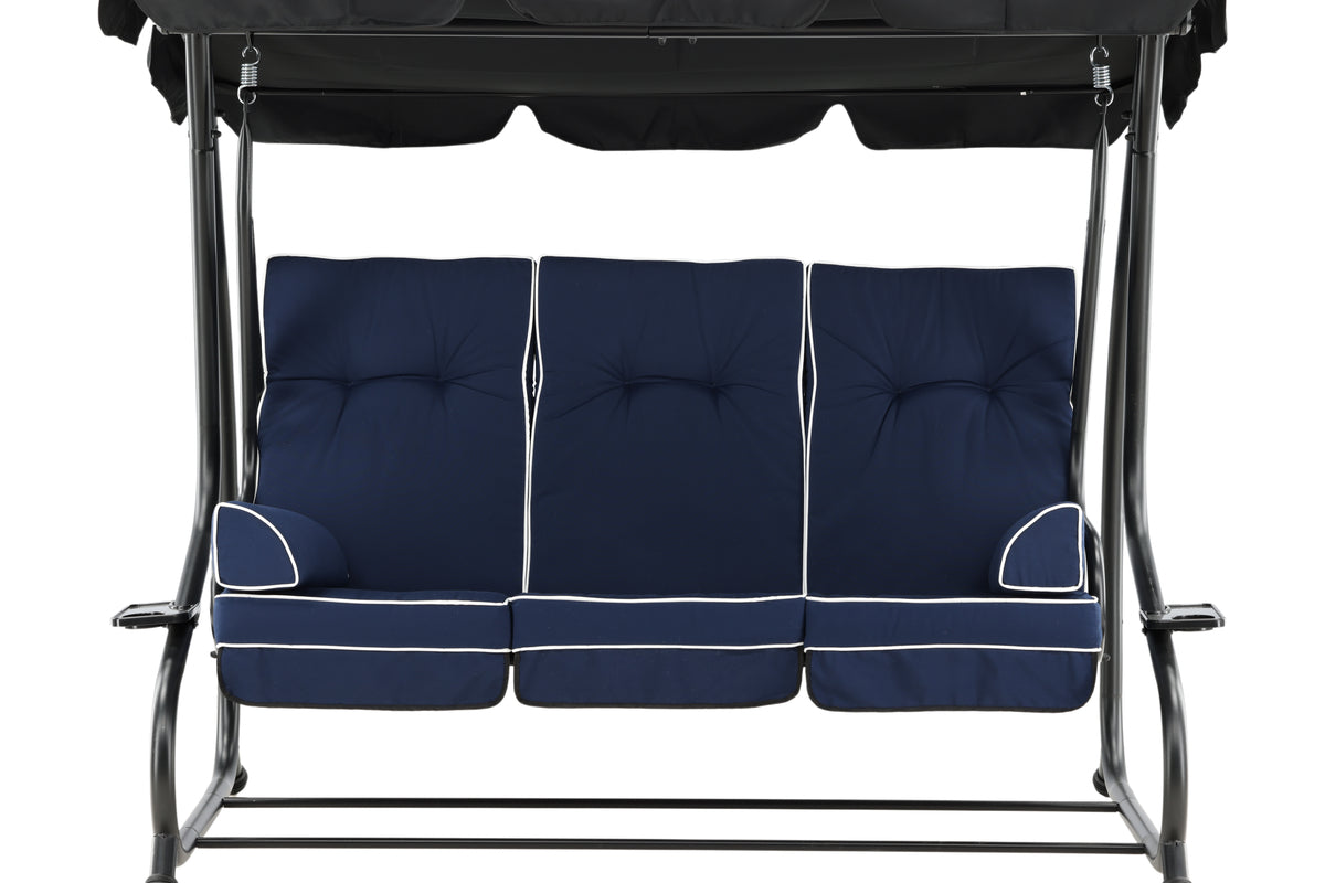 Blå 5-position pude med pude og pendler, der holder puden på plads. Læn dig tilbage og nyd det bekvemt i mange timer.