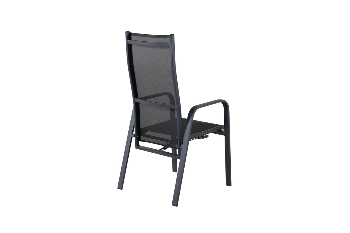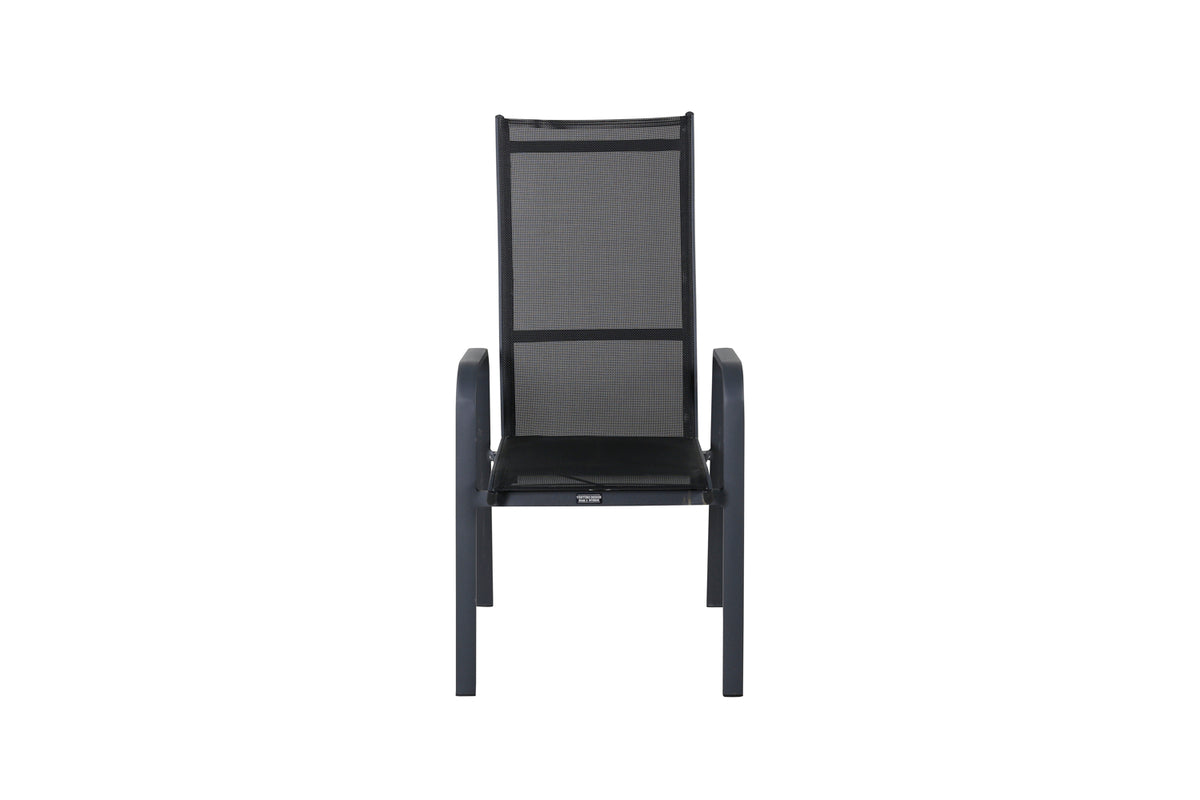 Copacabana, en moderne stabelbar armstol i sort farve, der er fremragende ved spisebordet på terrassen. Stolens ryglæn kan vippes, hvilket gør den meget komfortabel og praktisk. Nyd sommeren på allerbedste vis!