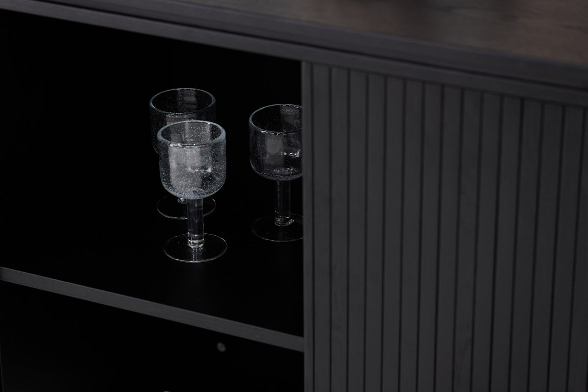 Et ovalt reliefskab, der muliggør både synlig og skjult opbevaring! Dette træbeskyttede skab fra Fjällbacka serien tilhører vindkollektionen og har et slankt, skandinavisk design, der tiltrækker blikket! Fremstillet af sort eg med finer og har skabe til skjult opbevaring samt to åbne hylder, der er fremragende til nogle smukke indretningsdetaljer eller små lysestager. Hæv stilniveauet i dit hjem med et trend-sikkert opbevaringsskab, der står tidens prøve!