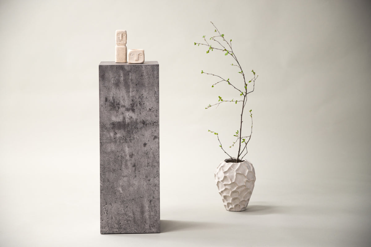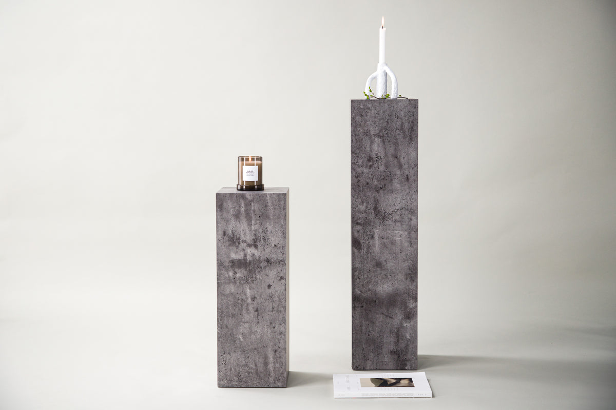 Det perfekte interiørdetalje til at løfte dit hjem til næste niveau! Dette pedestal fra Ramsvik serien er formet som en høj lige blok i industrielt design med spraglet betonlignende finish, lavet af træ. En pedestal er fantastisk til at fremhæve dine planter, en blomsterkrukke eller hvorfor ikke bare placere en smuk bordlampe og oplyse et mørkt hjørne? Kun fantasien sætter grænser! Pedestalen fås i to forskellige størrelser, vælg en der passer bedst eller kombiner begge.